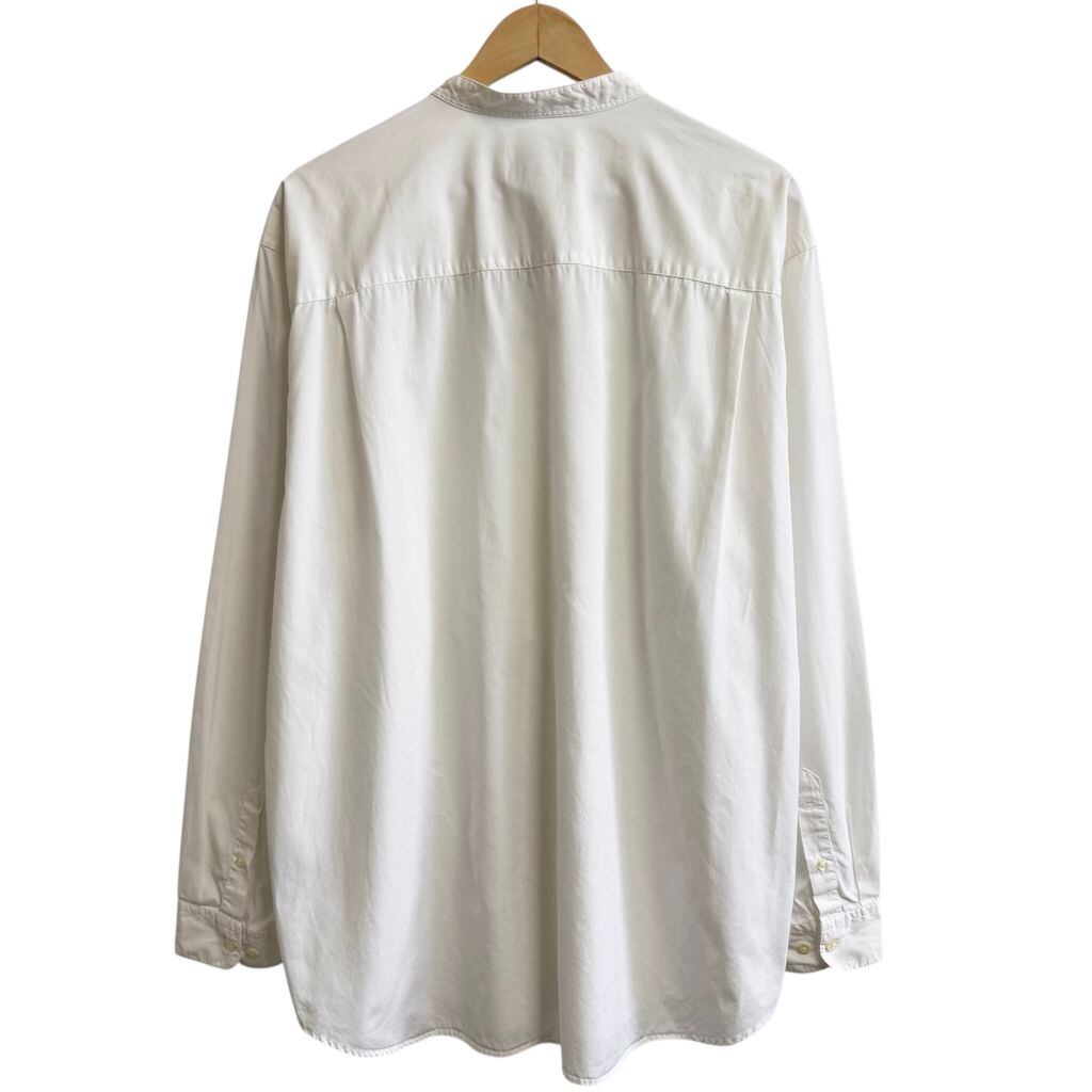EDDIE BAUER エディーバウアー バンドカラー コットンシャツ 無地 ポケット付き 長袖シャツ 白 XLサイズ No.H982