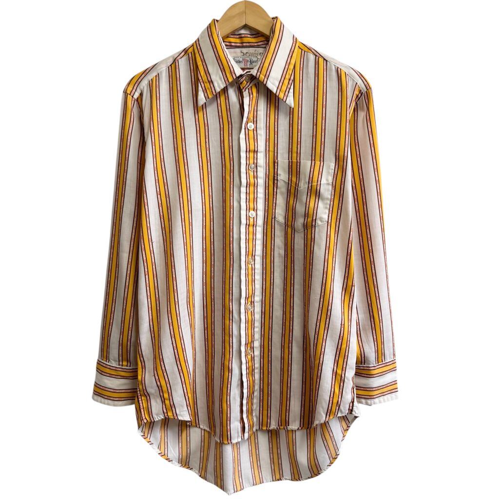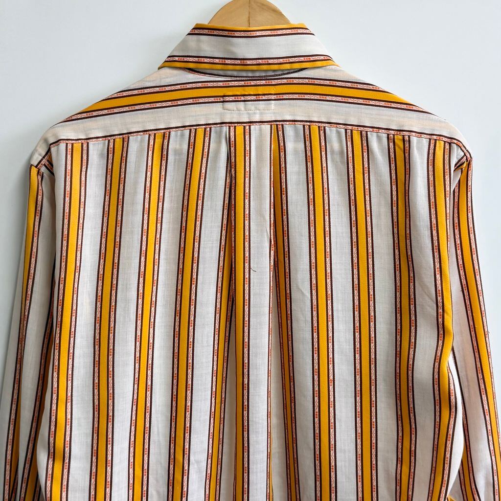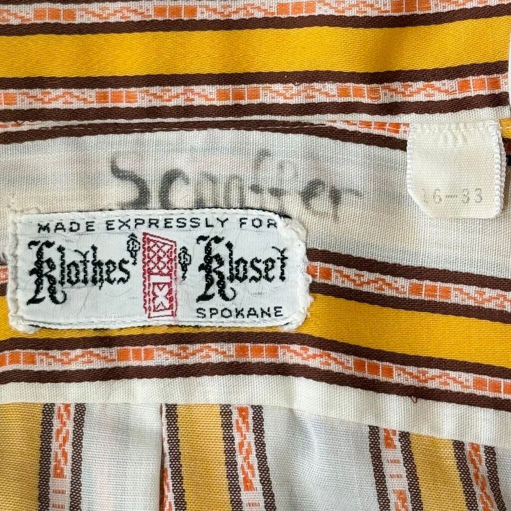 〜70's USA製 vintage ビンテージ Klothes Kloset ストライプ ポケット付き 長袖シャツ 白×やまぶき色×オレンジ×茶 No.H983
