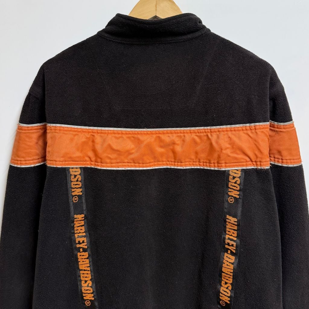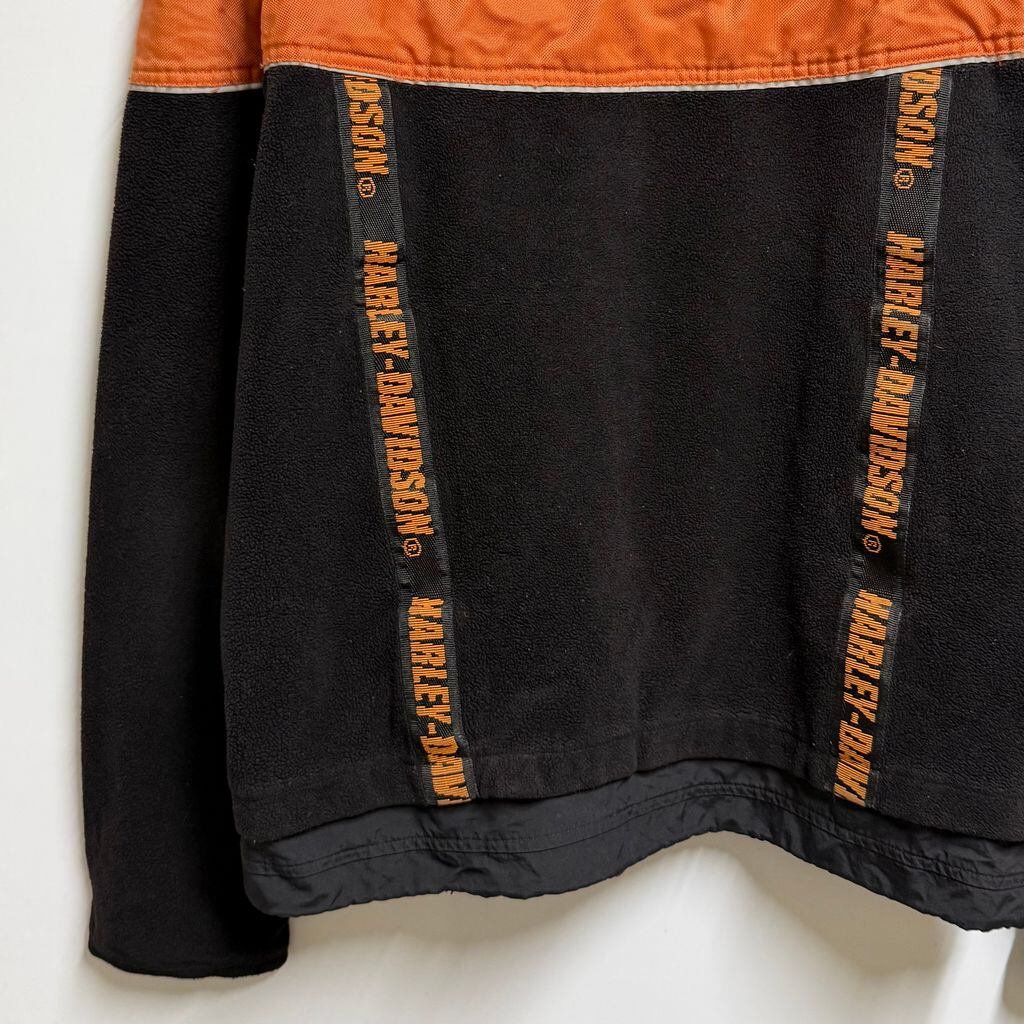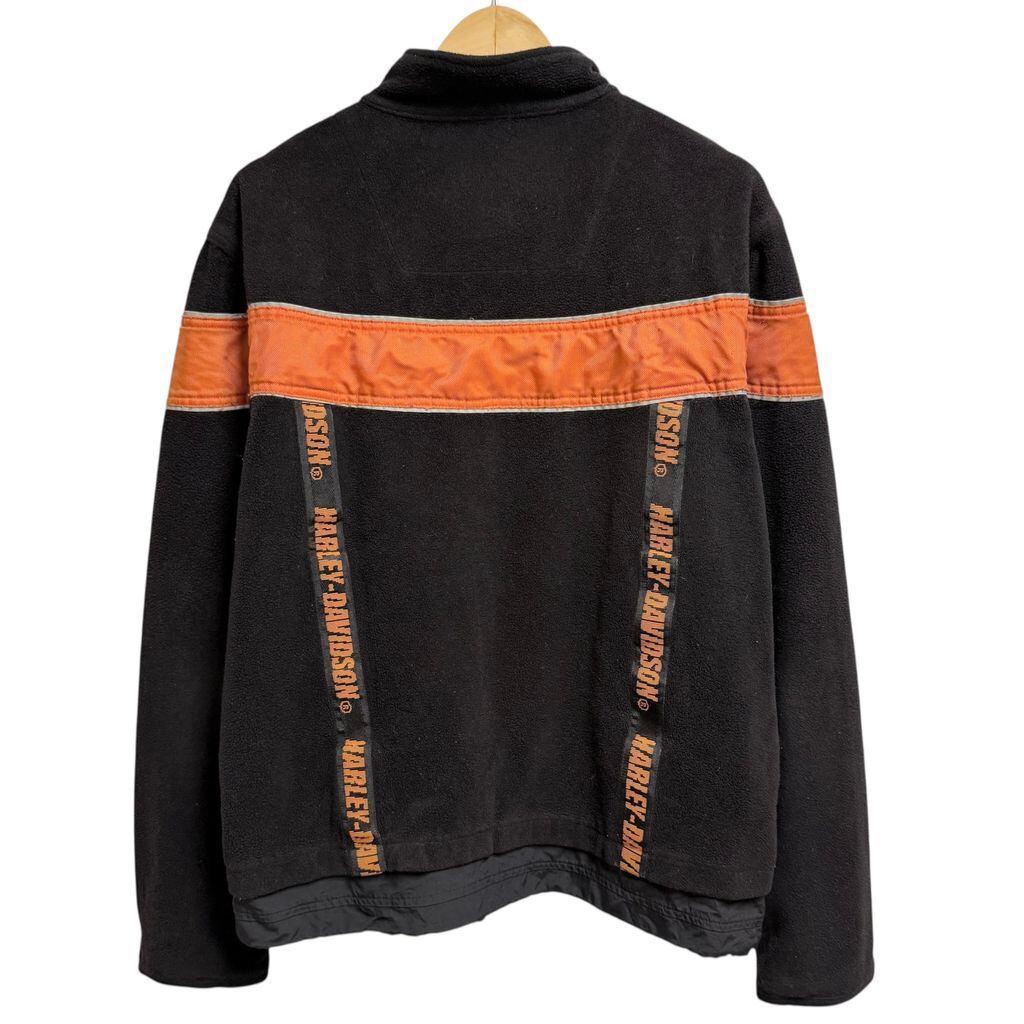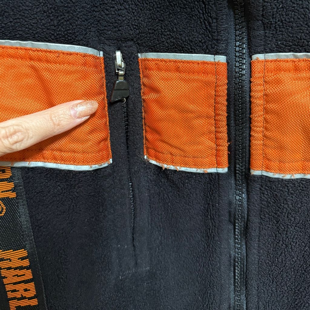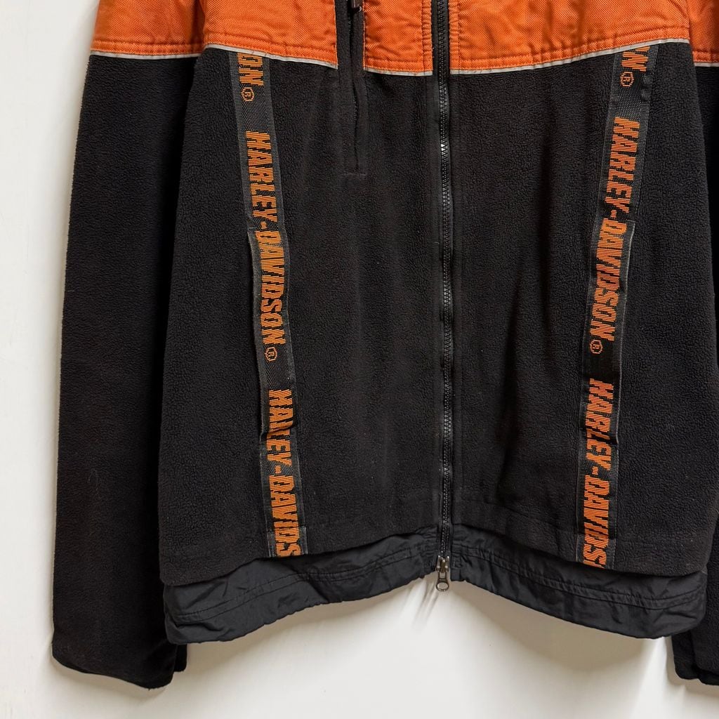 HARLEY DAVIDSON ハーレーダビッドソン フリースジャケット 切り替えデザイン ロゴプリント フルジップ ポケット付き 黒×オレンジ Lサイズ No.H993