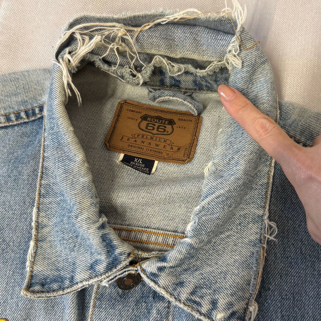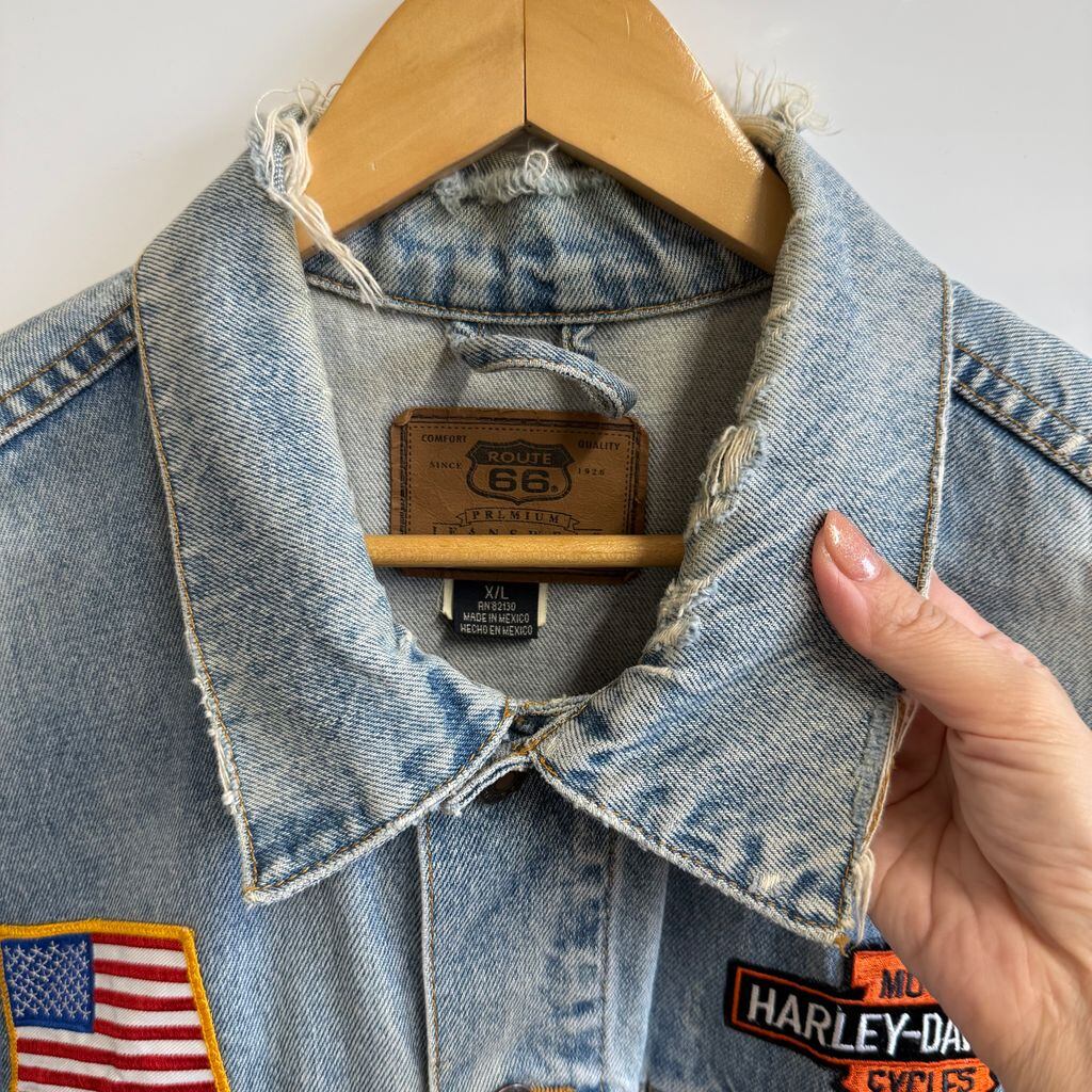 ROUTE66 デニムベスト ハーレーダビッドソン ワッペン 星条旗 ビジュー ライトブルー 青 XLサイズ No.L012