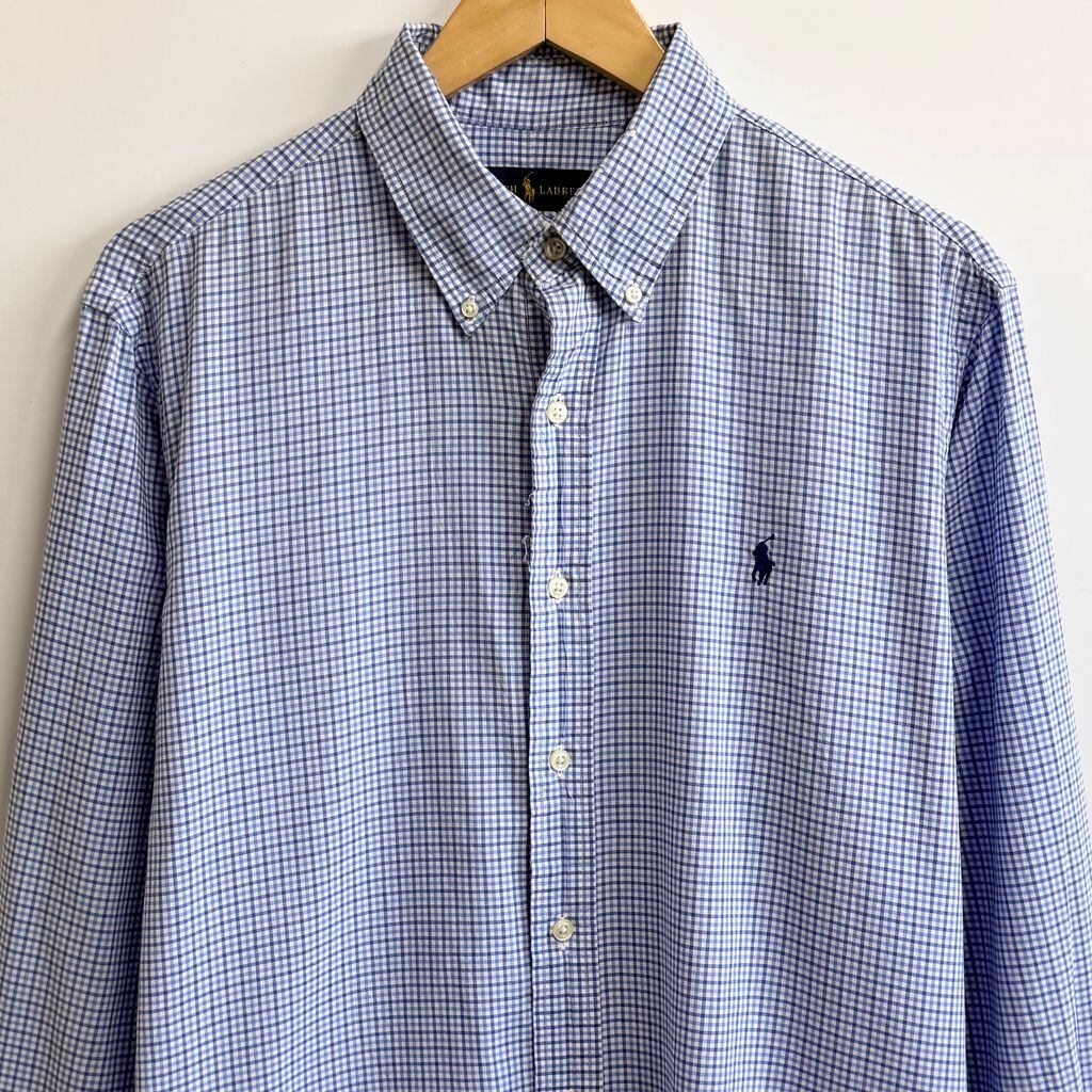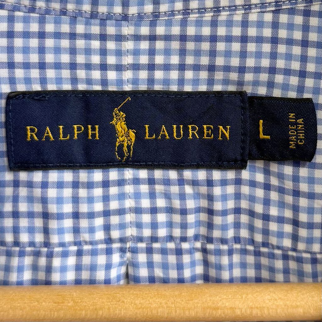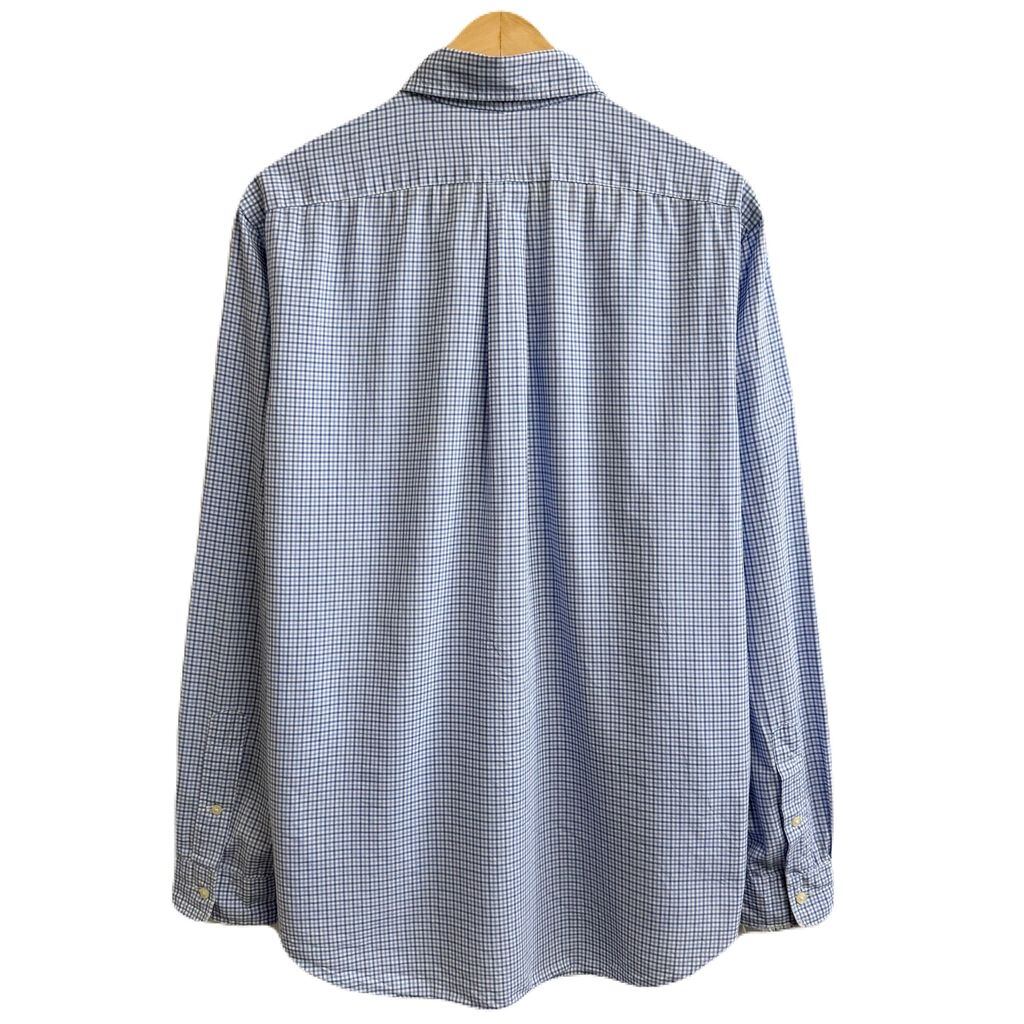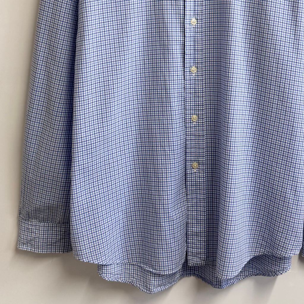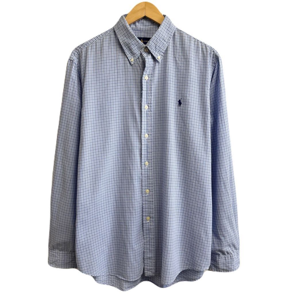 RALPH LAUREN ラルフローレン ボタンダウンシャツ コットンシャツ チェック柄 長袖シャツ ワンポイントロゴ 刺繍 白×青×紺 Lサイズ No.L043