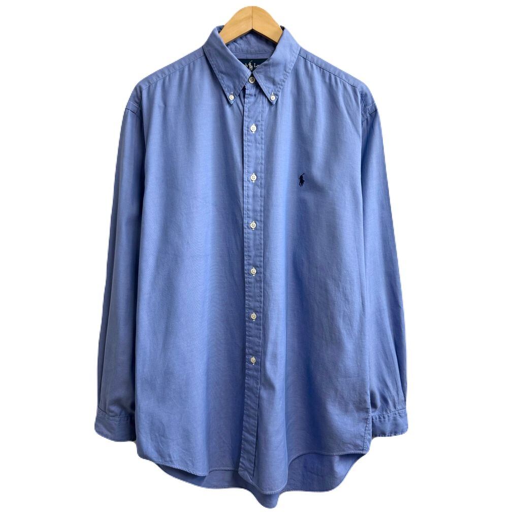 Ralph Lauren ラルフローレン YARMOUTH ボタンダウンシャツ コットンシャツ 長袖シャツ ワンポイントロゴ 刺繍 青 ブルー No.L044
