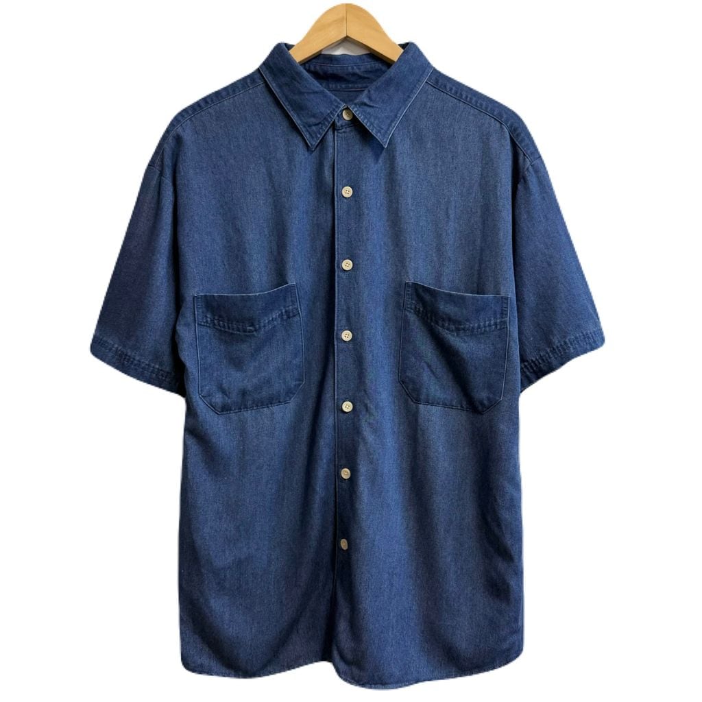 ST JOHN'S BAY 無地 ポケット付き 半袖シャツ 青 ブルー XLサイズ No.L049