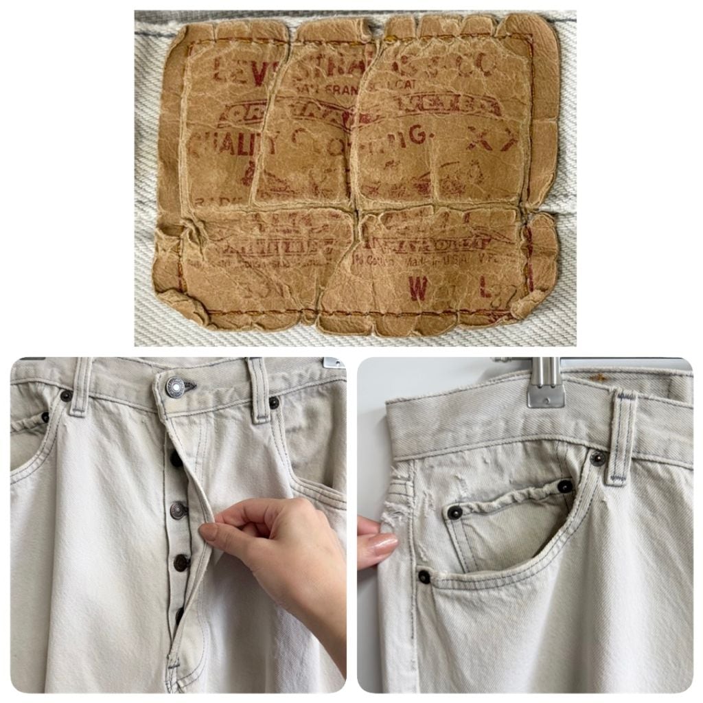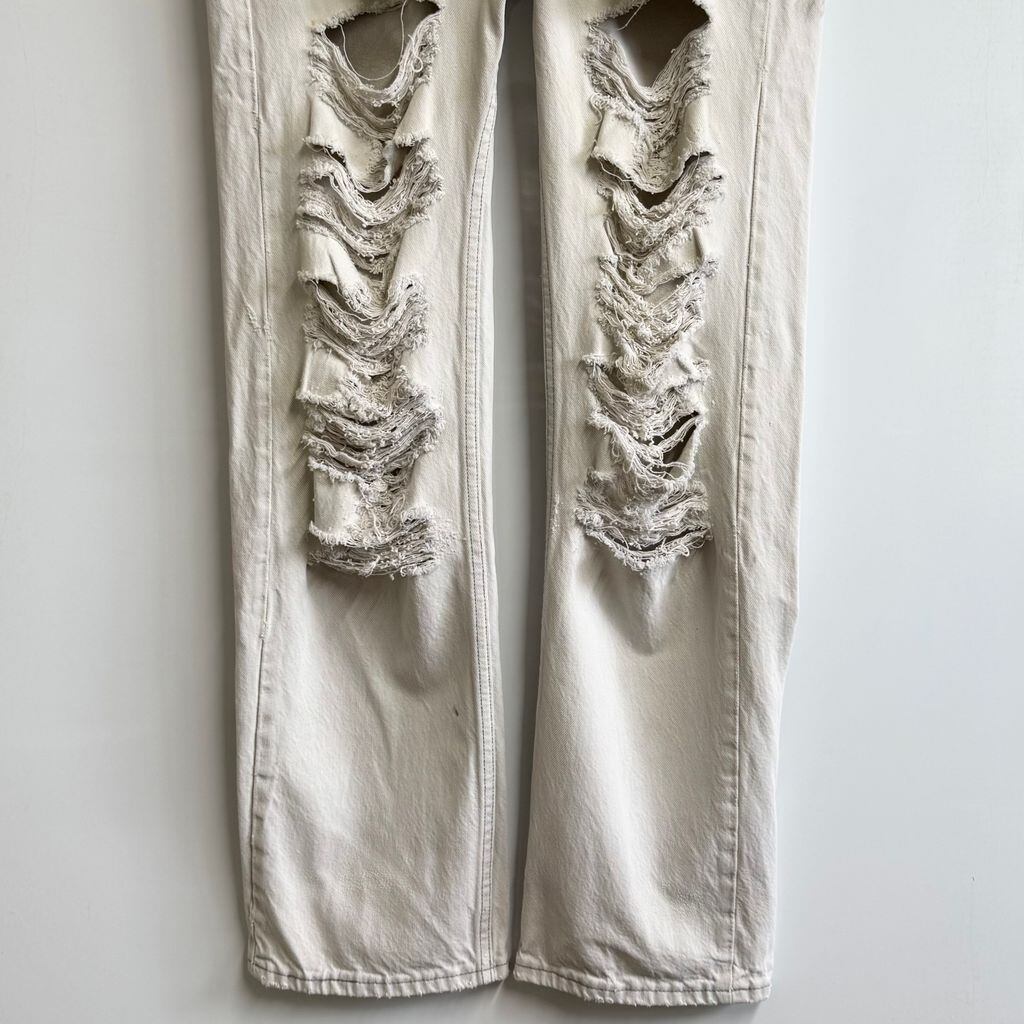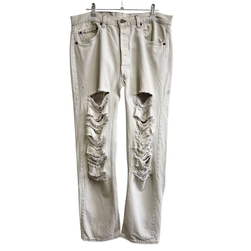 80's USA製 Levi's リーバイス 501 ボタンフライ デニムパンツ コットンパンツ ボロ オフホワイト w36×32 No.L056