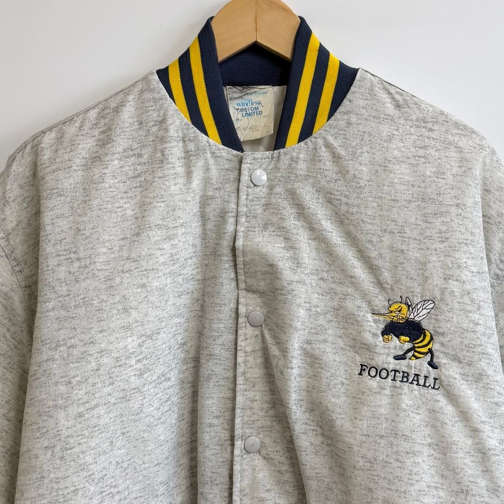 USA製 Windless CUSTOM LIMITED スタジャン ハチ 刺繍 FOOTBALL フットボール リブライン ライトグレー Lサイズ No.L101