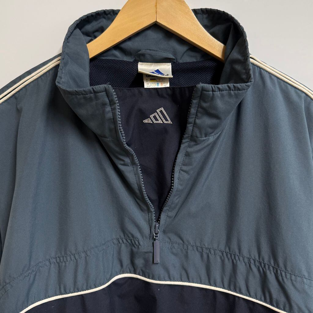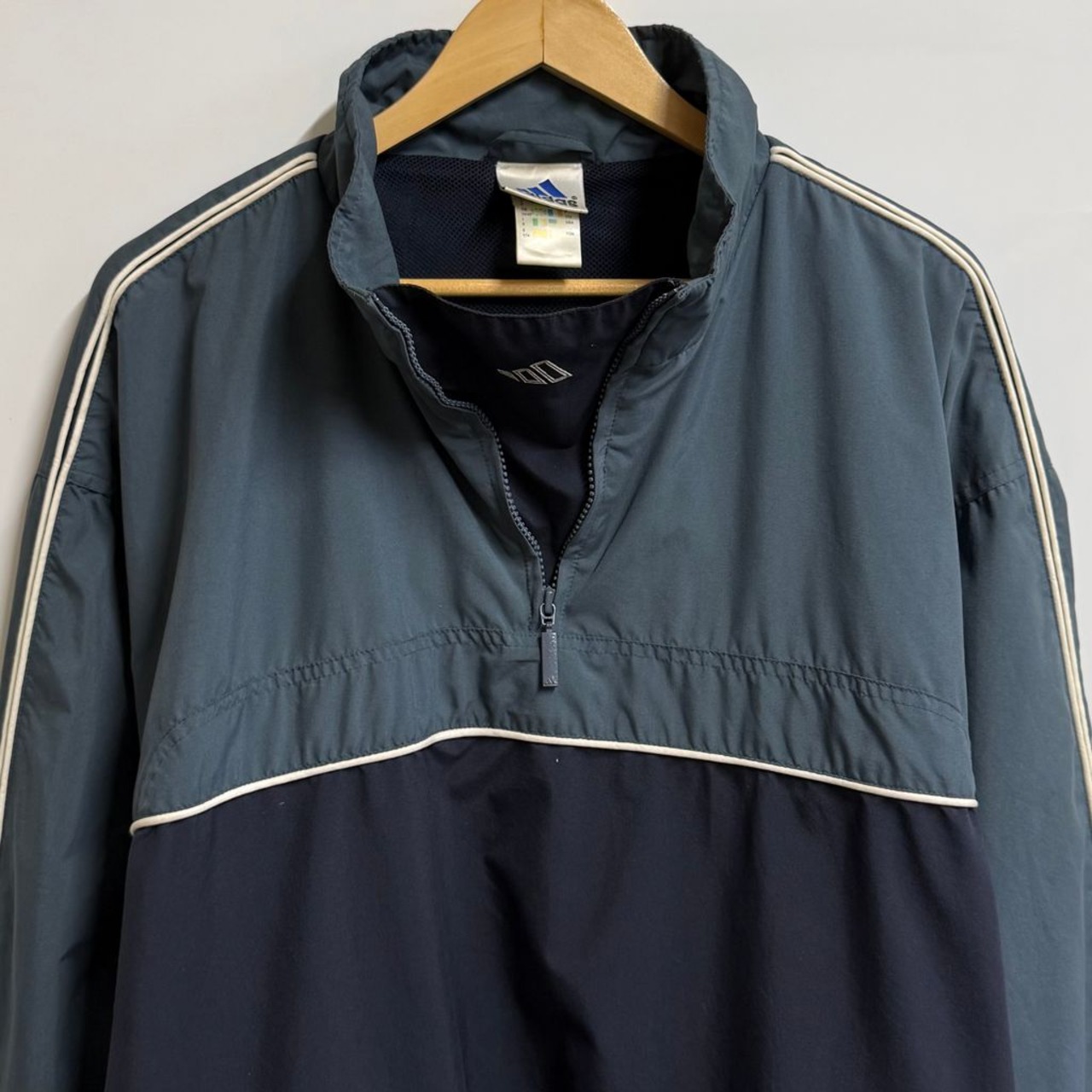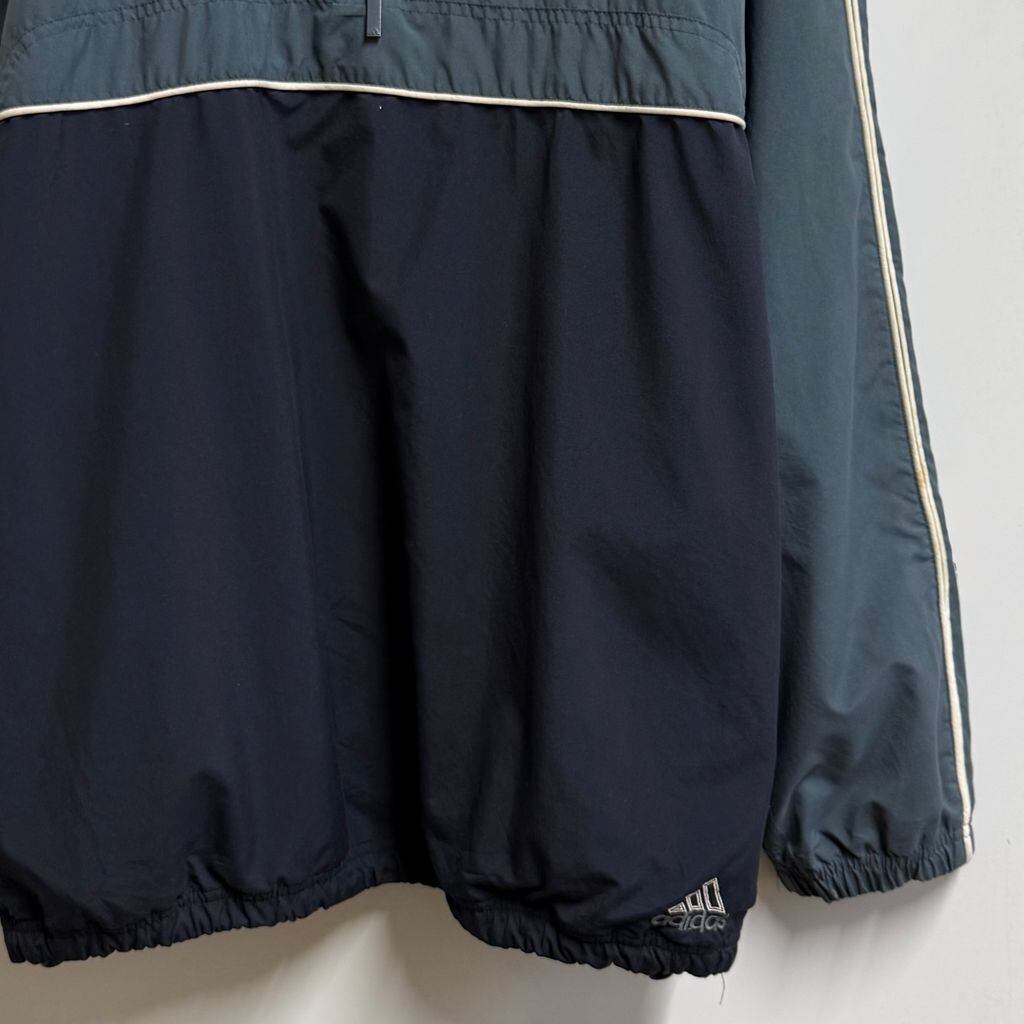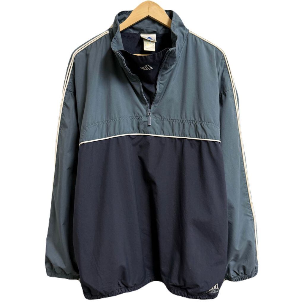 adidas アディダス プルオーバー ハーフジップ ウィンドブレーカー ポケット付き ブルーグレー×ネイビー Lサイズ No.L123
