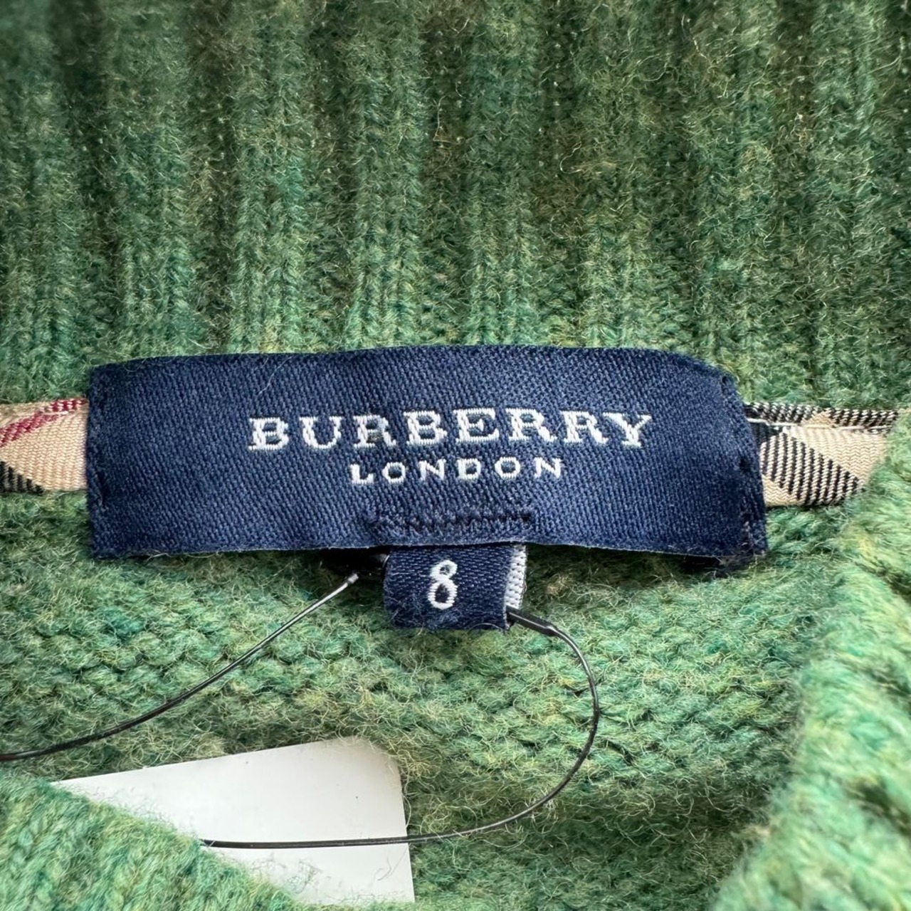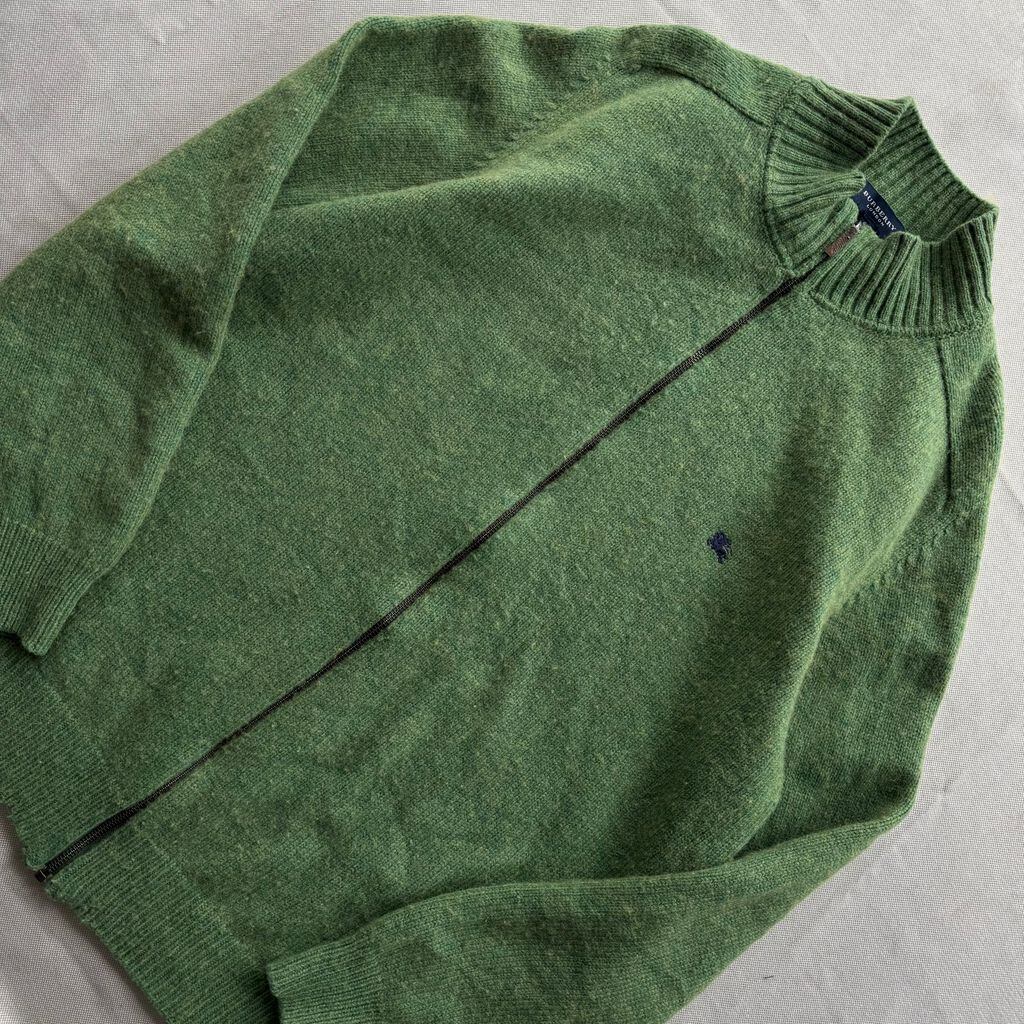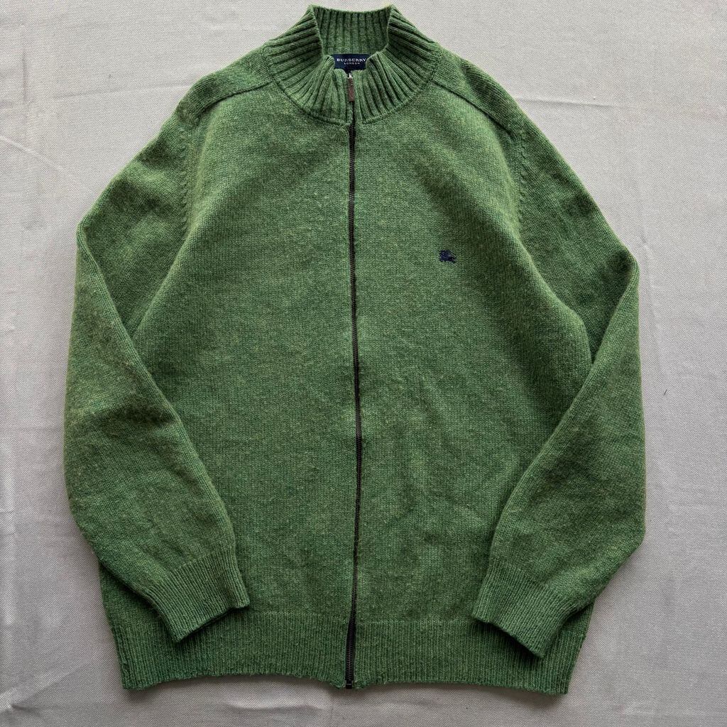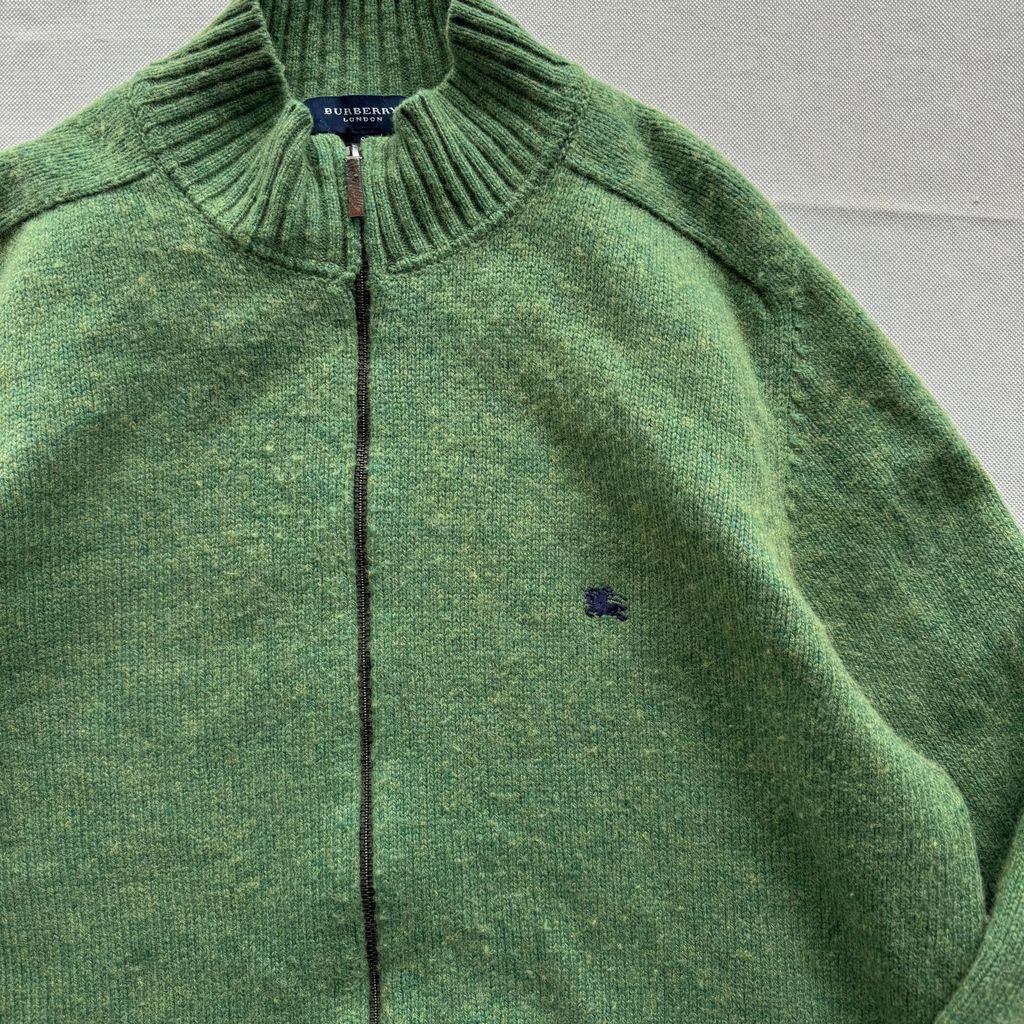 BURBERRY LONDON バーバリーロンドン フルジップ ロゴ刺繍 ニット 黄緑 サイズ8 No.E887