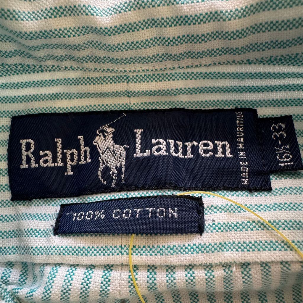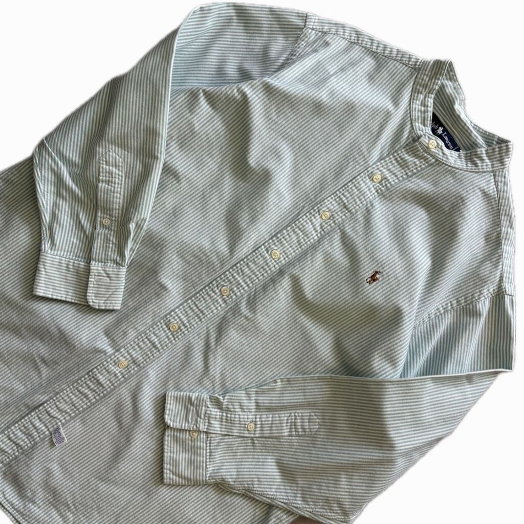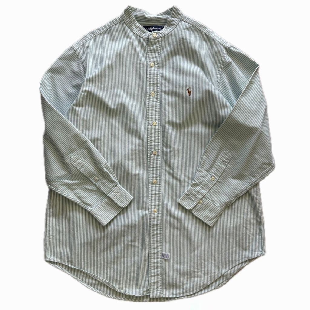 Ralph Lauren ラルフローレン ストライプ柄 バンドカラー ノーカラーシャツ 長袖シャツ 水色×白 サイズ16 1/2 33 No.E891