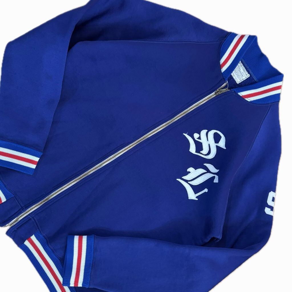 60s USA製 Champion チャンピオン プロダクツタグ ヴィンテージ ブルゾン ジャケット 裏起毛 青×白×赤 Mサイズ No.E902