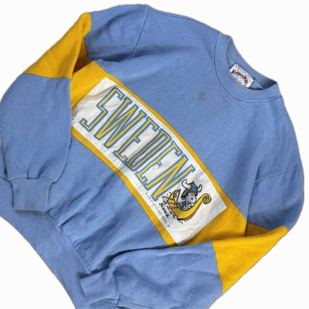 80s USA製 Nutmeg Mills Vintage Snoopy Sweden スヌーピー スウェット 水色×黄×白 Mサイズ No.E906