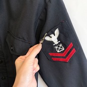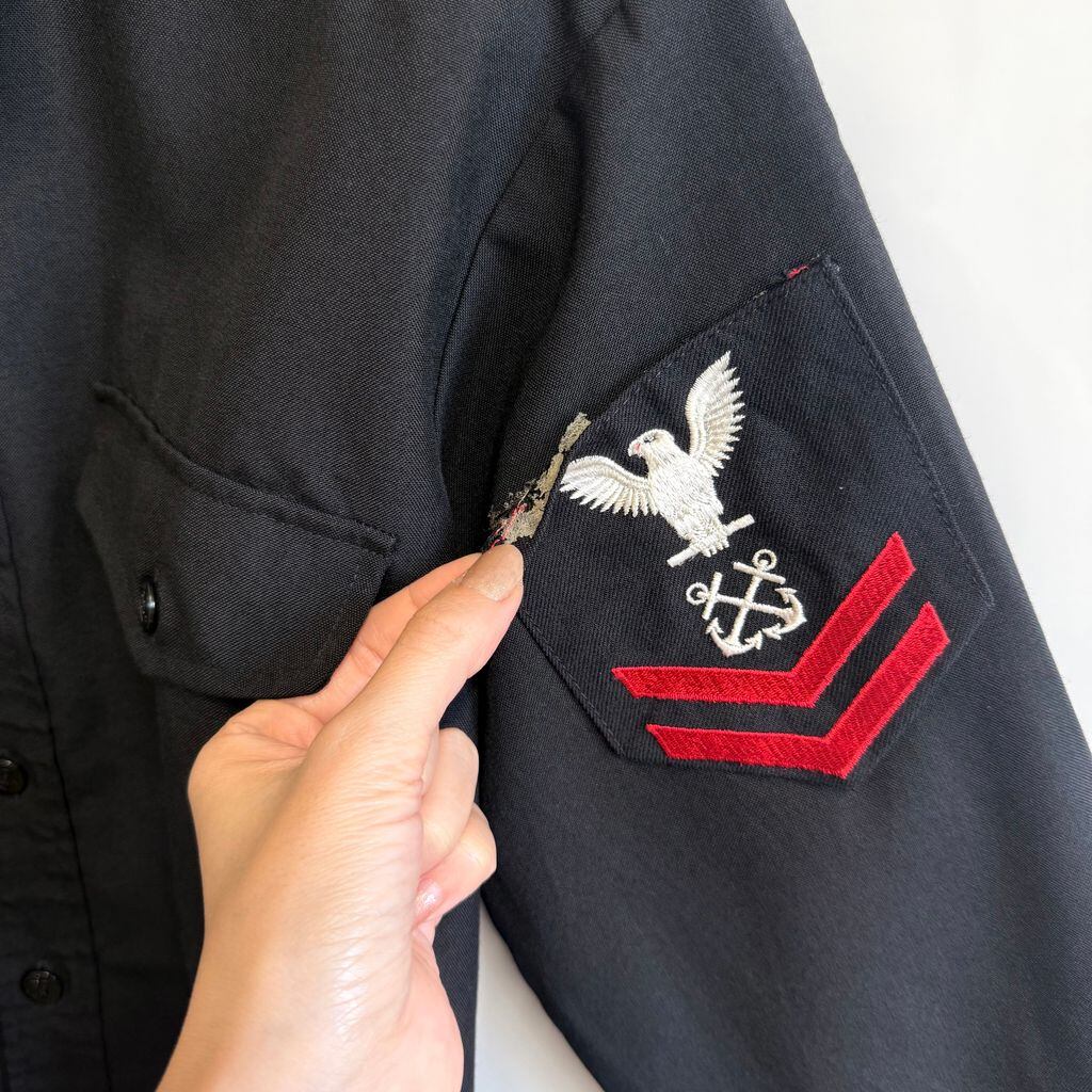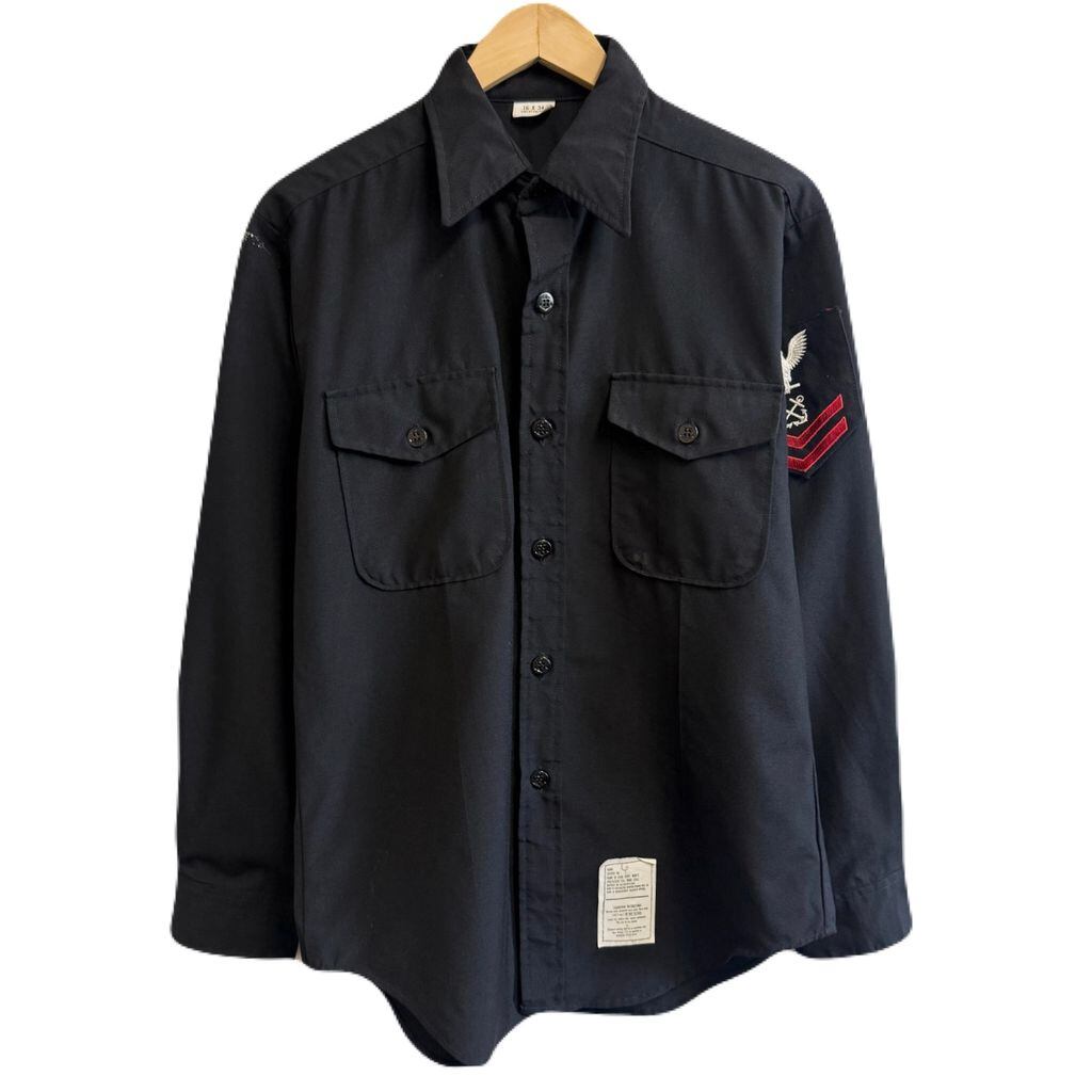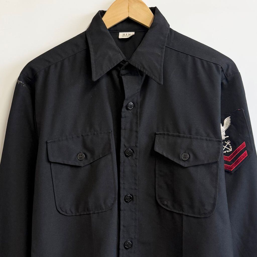 80's U.S. ARMY ユーエスアーミー アメリカ海軍 8405-01-230-6196 ユーティリティシャツ ミリタリーシャツ ワッペン 黒 ブラック No.L214