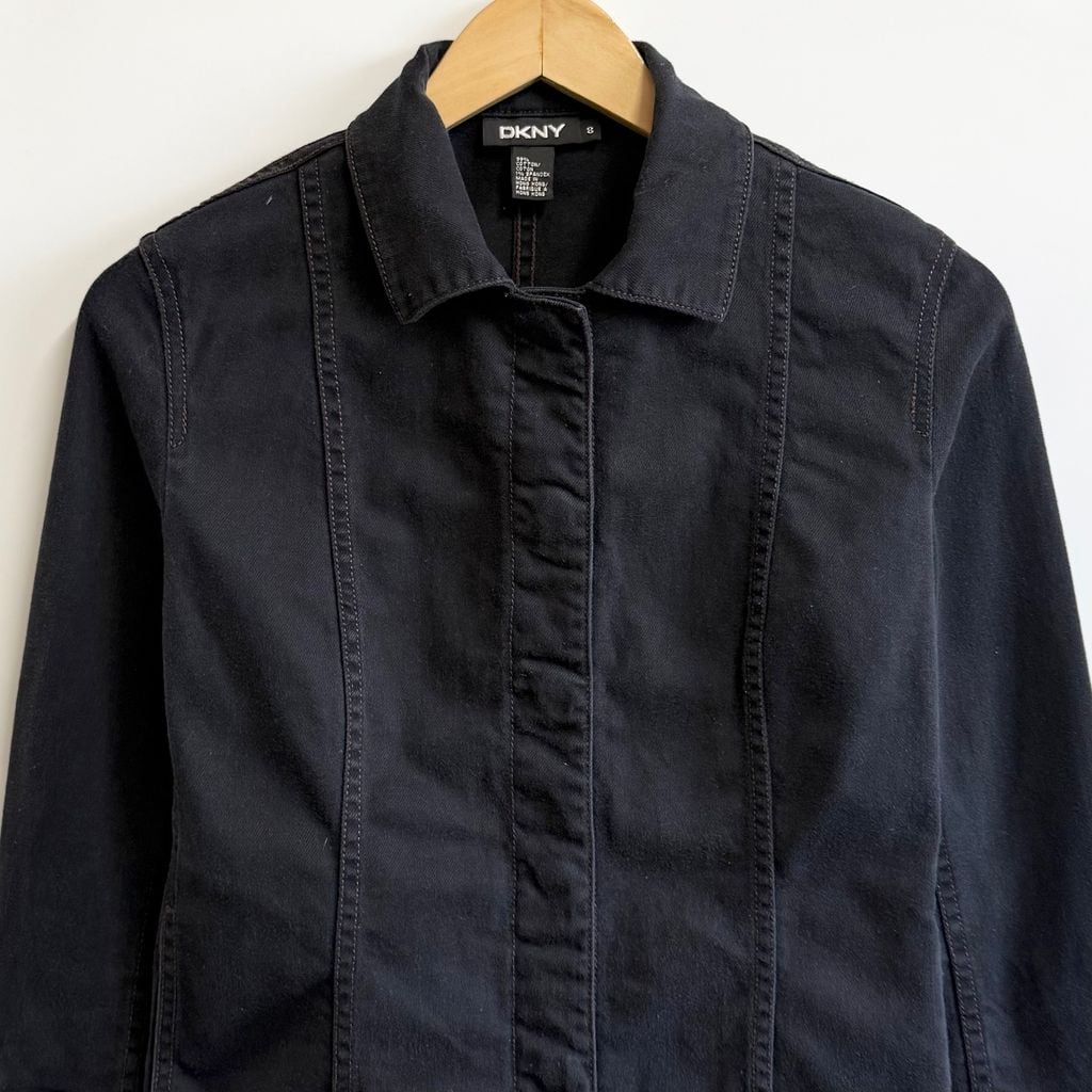 (レディース) DKNY ブラックデニム デニムジャケット Gジャン スナップボタン 黒 ブラック サイズ8 No.L217