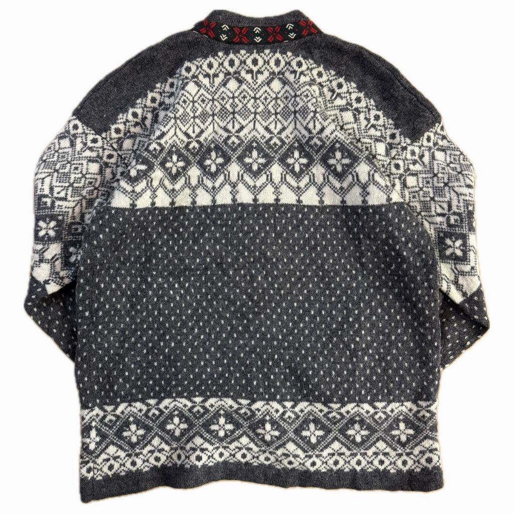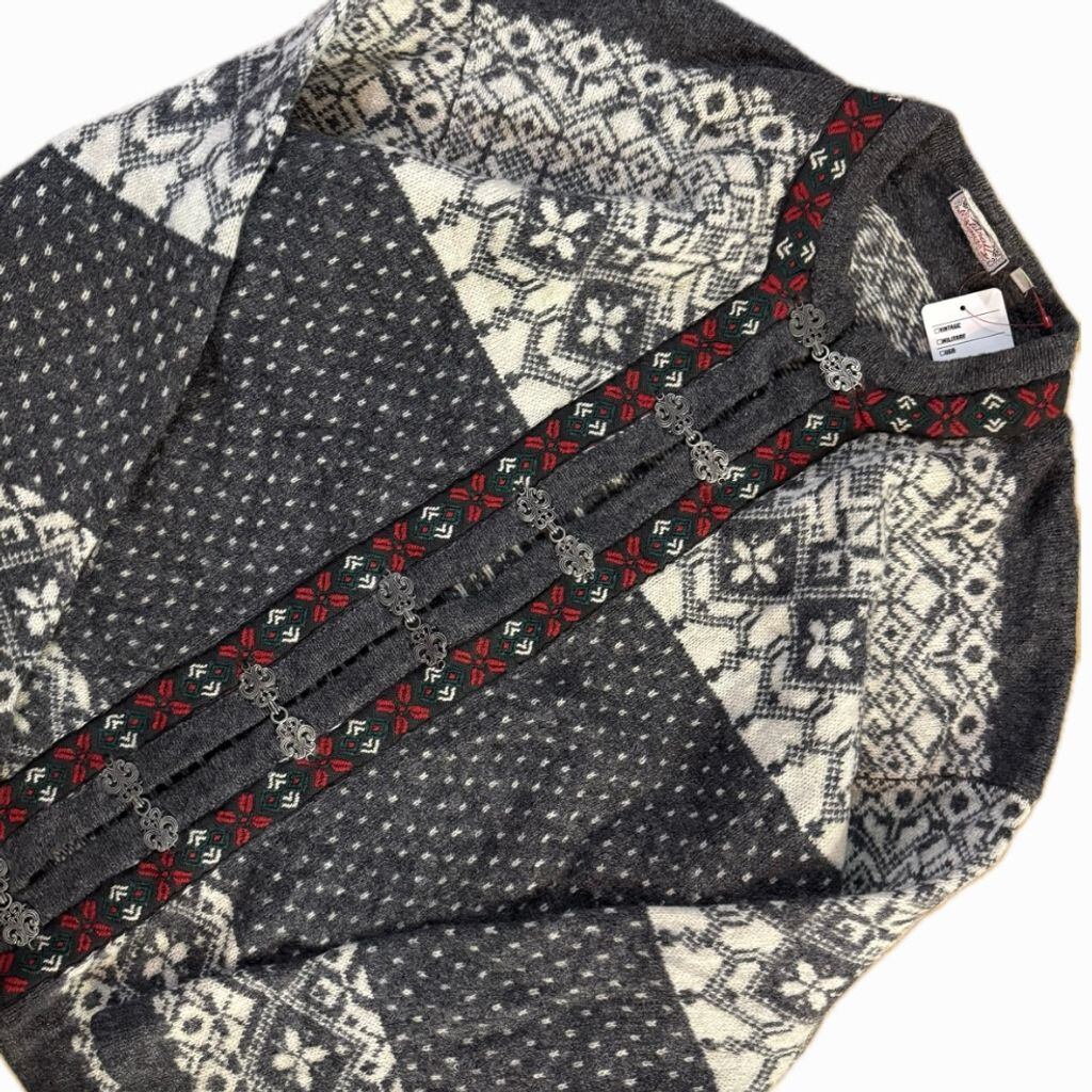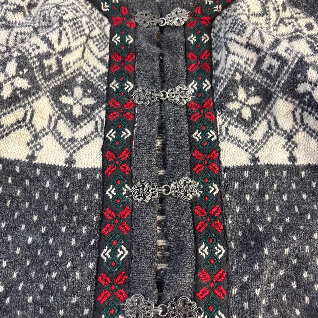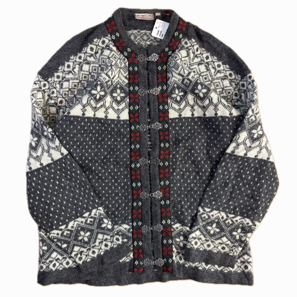 Naturally Yours BEAUTY & COMFORT ノルディック柄 チロリアンカーディガン チロルニット 灰色×赤×白×緑 Lサイズ No.E920