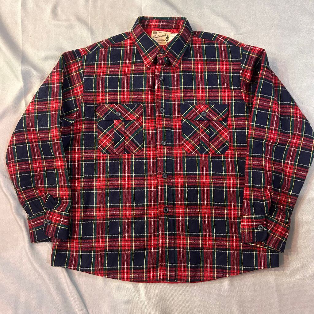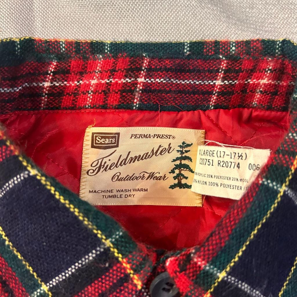 80s~ Sears field master out door wear ヘビネルシャツ チェックシャツ 裏地キルティング 赤×ネイビー×黄色 SIZE XL No.T155