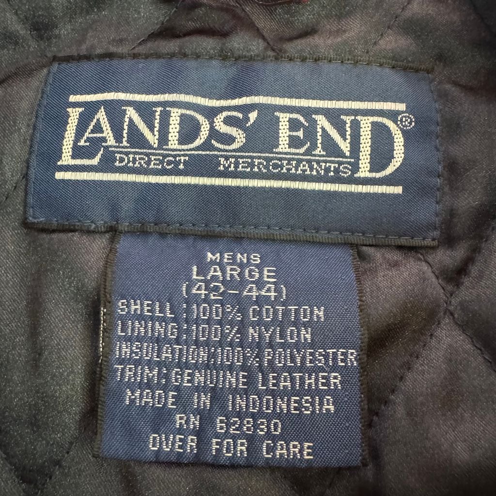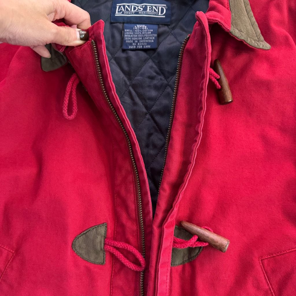 LAND'S END ランズエンド ダッフルコート 襟 レザー ポケット付き 赤×茶 Lサイズ No.E928