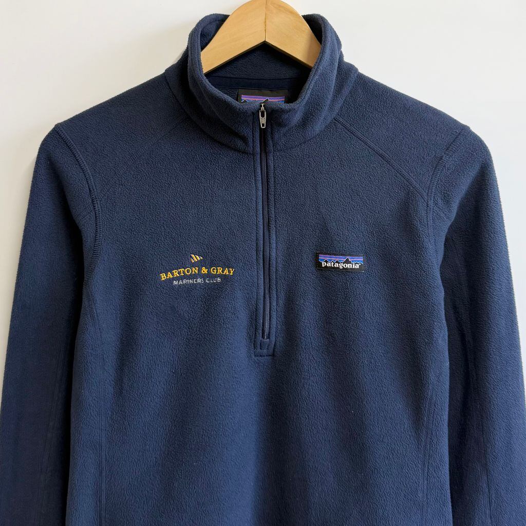 Patagonia パタゴニア フリースプルオーバー ハーフジップ ロゴプリント 刺繍 紺 ネイビー Mサイズ No.L241