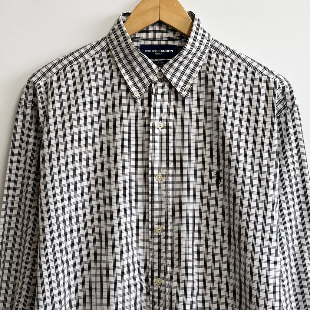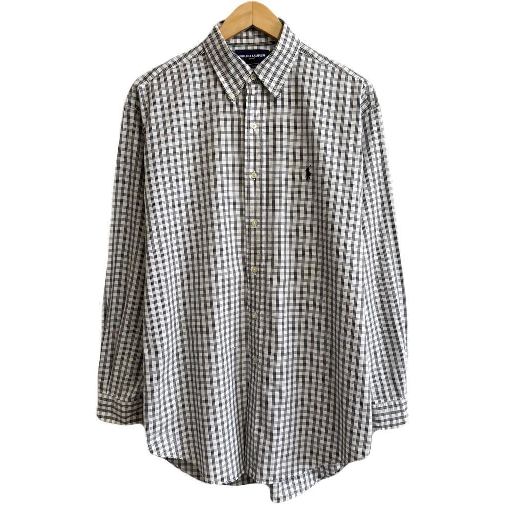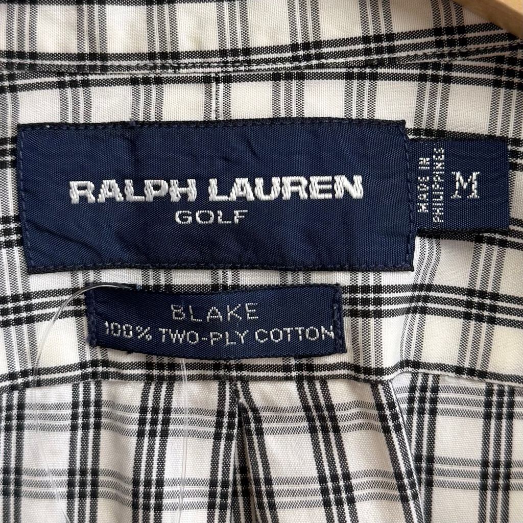 RALPH LAUREN ラルフローレン GOLF BLAKE ボタンダウンシャツ コットンシャツ チェック柄 長袖シャツ ワンポイントロゴ 刺繍 白×黒 Mサイズ No.L272