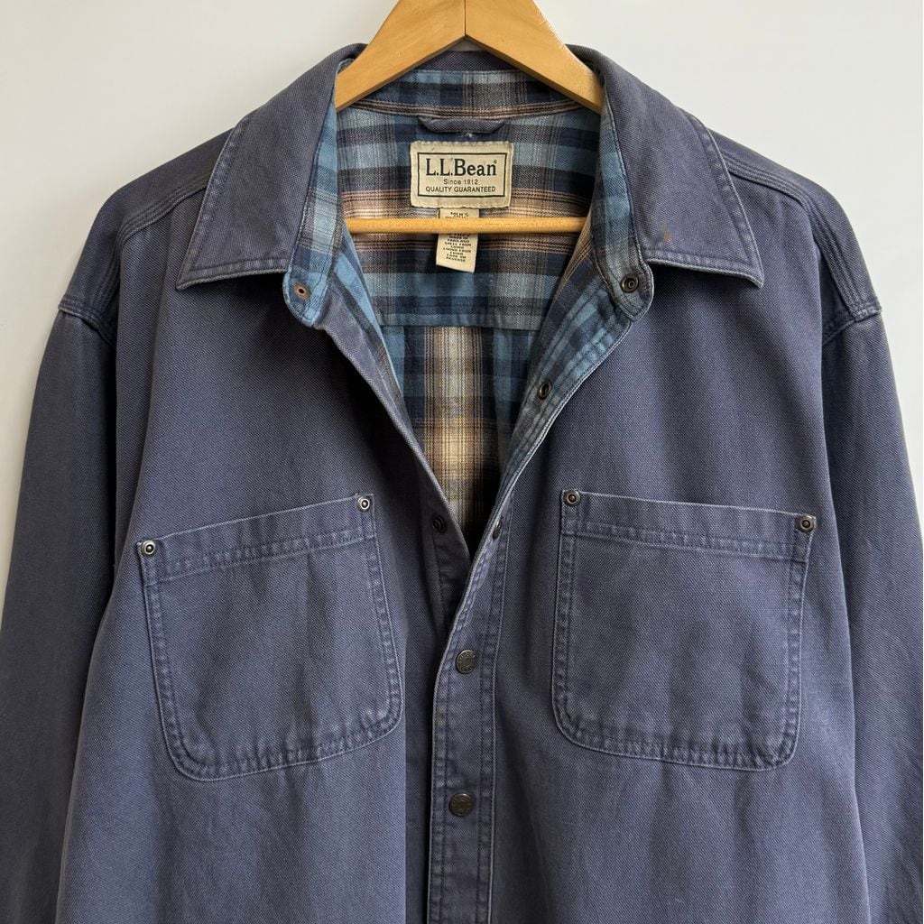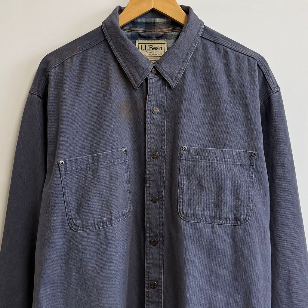 L.L.Bean エルエルビーン デニムシャツ スナップボタン 裏地チェック柄 シャツジャケット 厚手長袖シャツ ブルーグレー 青系 XLTサイズ No.L273