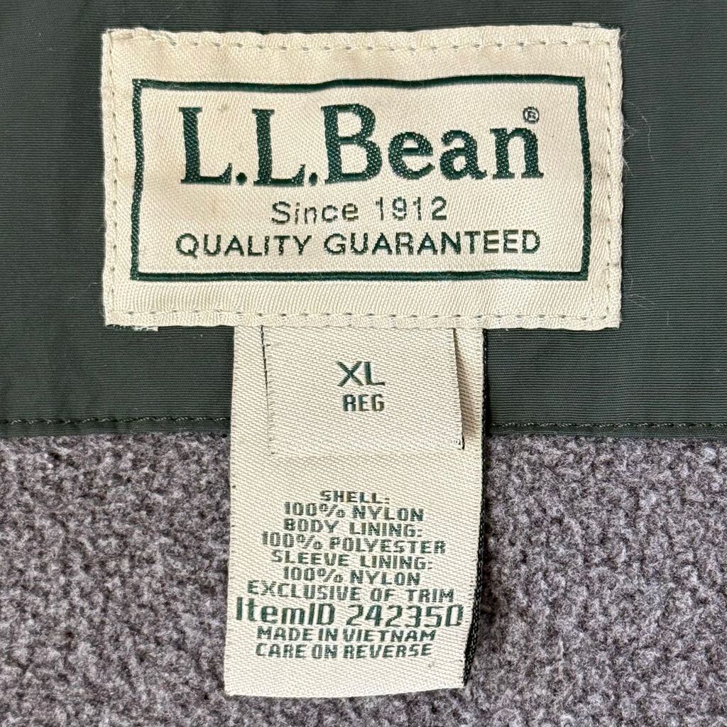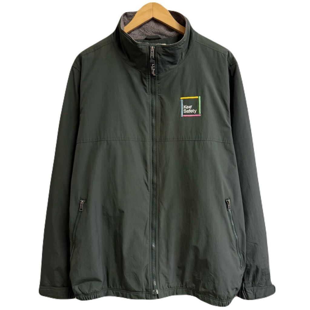 L.L.Bean エルエルビーン ナイロンジャケット フリースライニング 刺繍 フルジップ ポケット付き 緑 グリーン XLサイズ No.L282