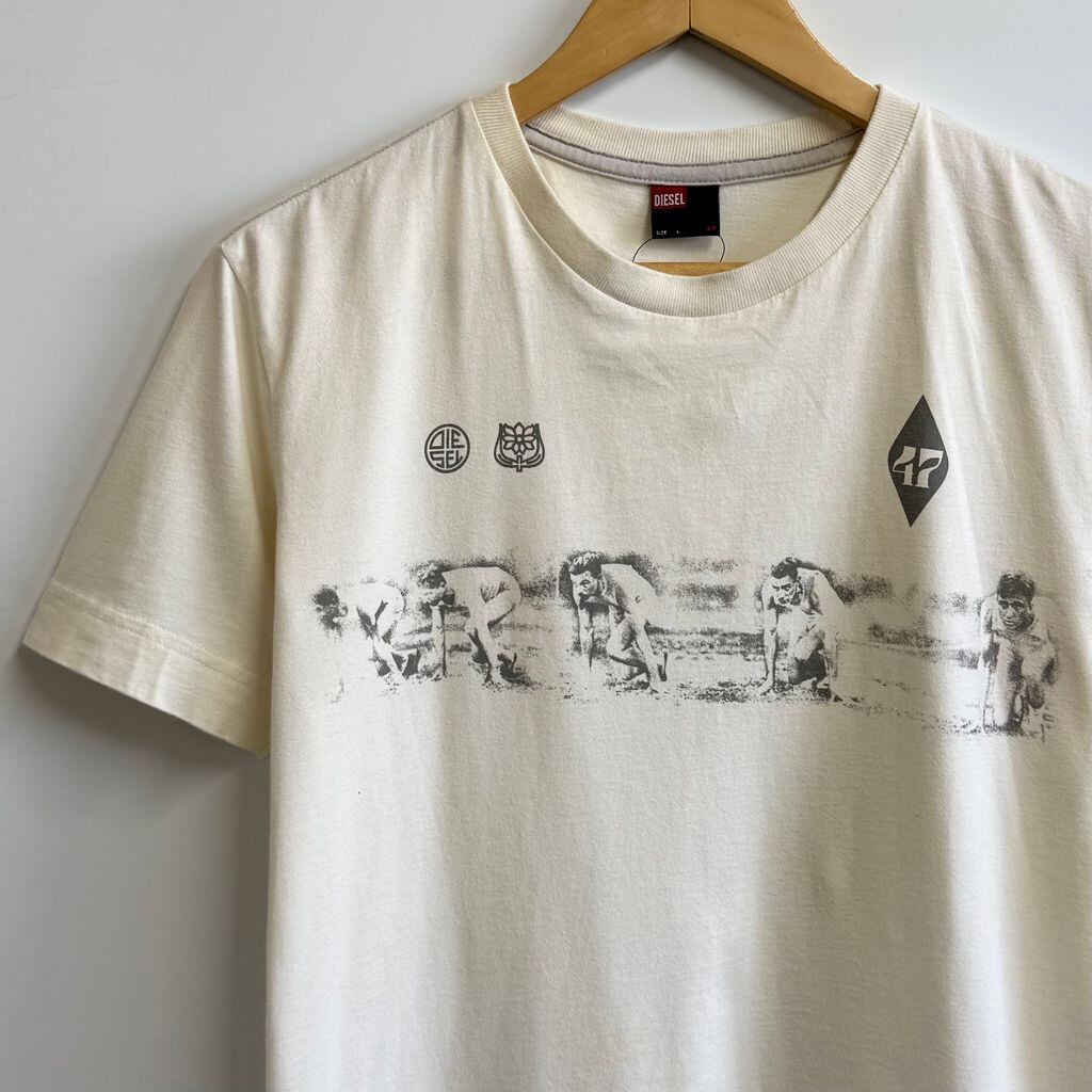 DIESEL ディーゼル フロントプリント ランナー グラフィック フォトプリント 半袖Tシャツ アイボリー Lサイズ No.L288