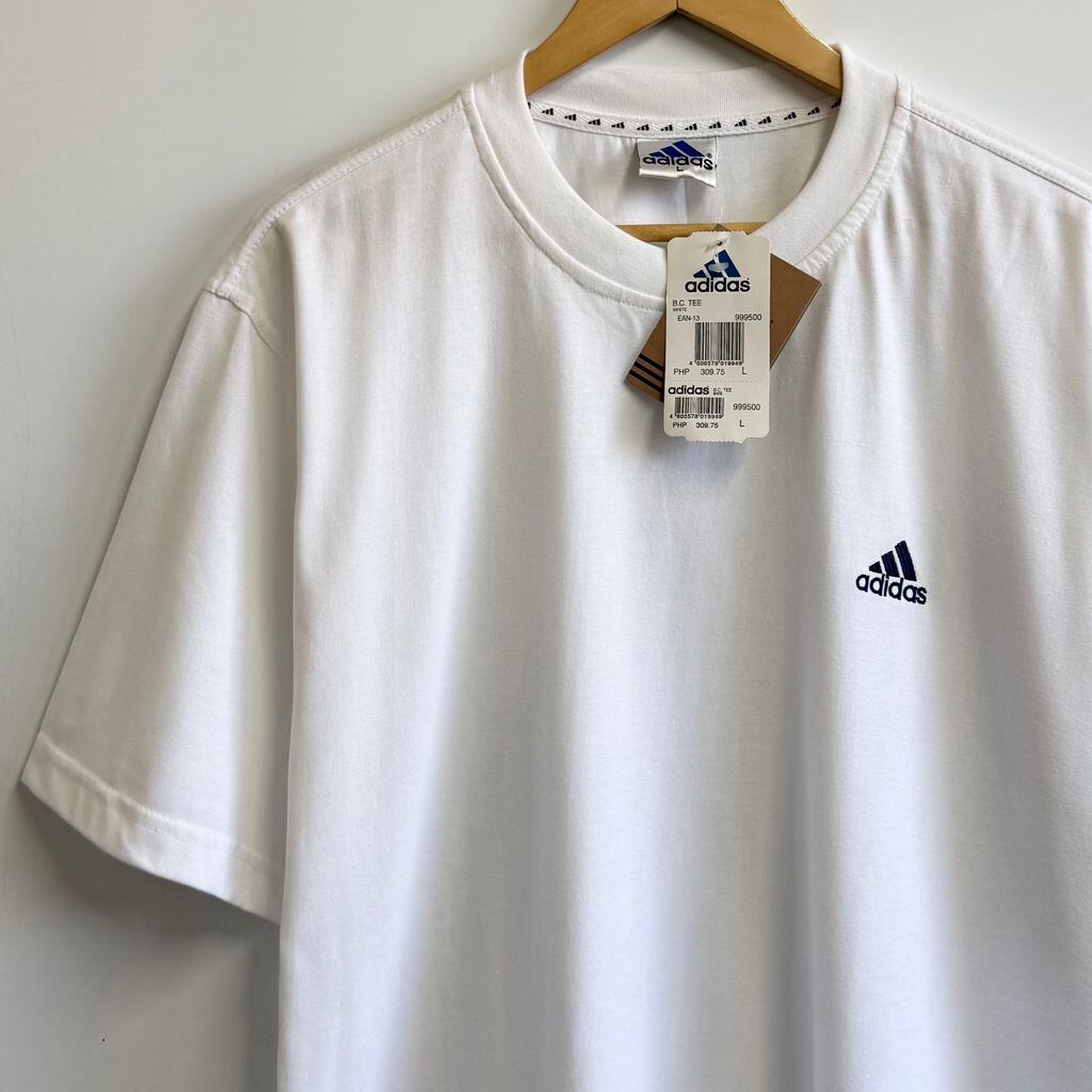 (デッドストック) adidas アディダス ワンポイントロゴ 刺繍 半袖Tシャツ 白 ホワイト Lサイズ No.L290