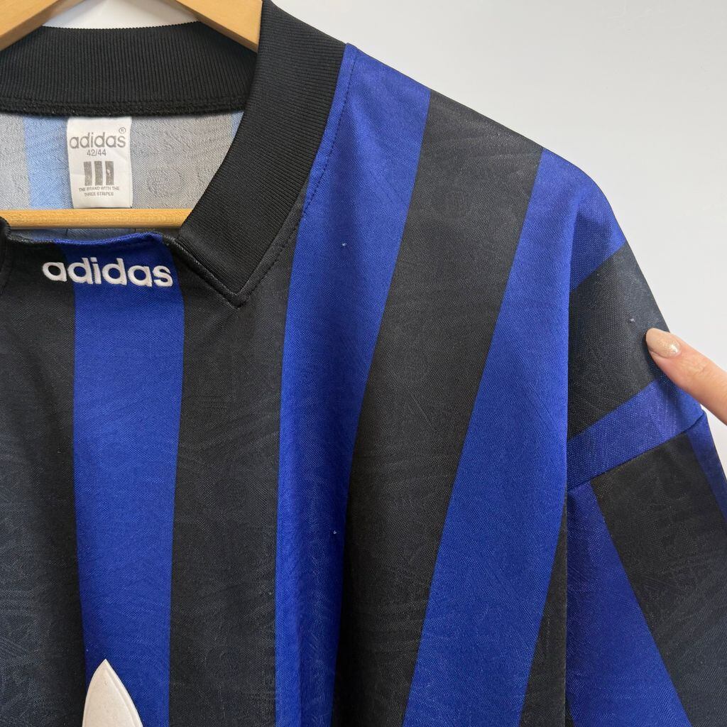 adidas アディダス トレフォイル ストライプ ゲームシャツ ユニフォーム 半袖 青×黒 No.L304