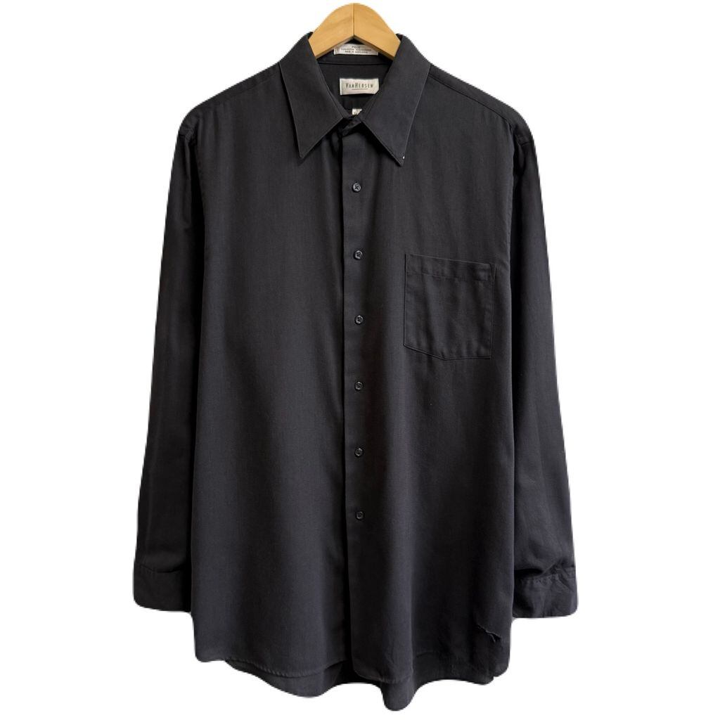 VAN HEUSEN ヴァンヒューゼン ボロ 無地 ポケット付き 長袖シャツ 黒系 No.L325