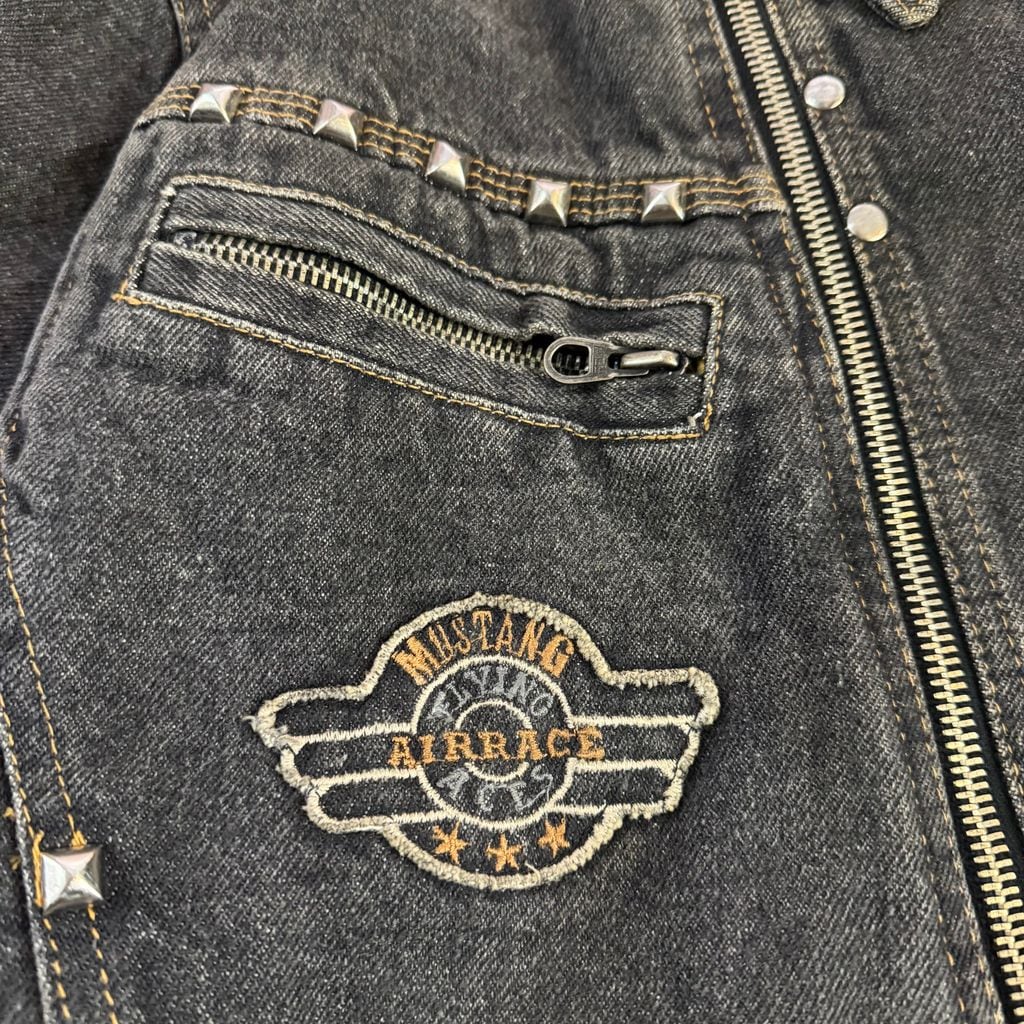 MUSTANG マスタング デニム スタッズ付き ライダースジャケット デニムブラック Sサイズ No.E948