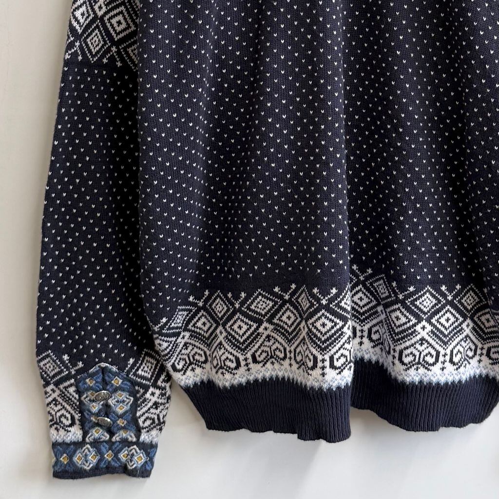 Heide ノルディックカーディガン チロリアンカーディガン メタルフック ネイビー×白×多色 No.L346