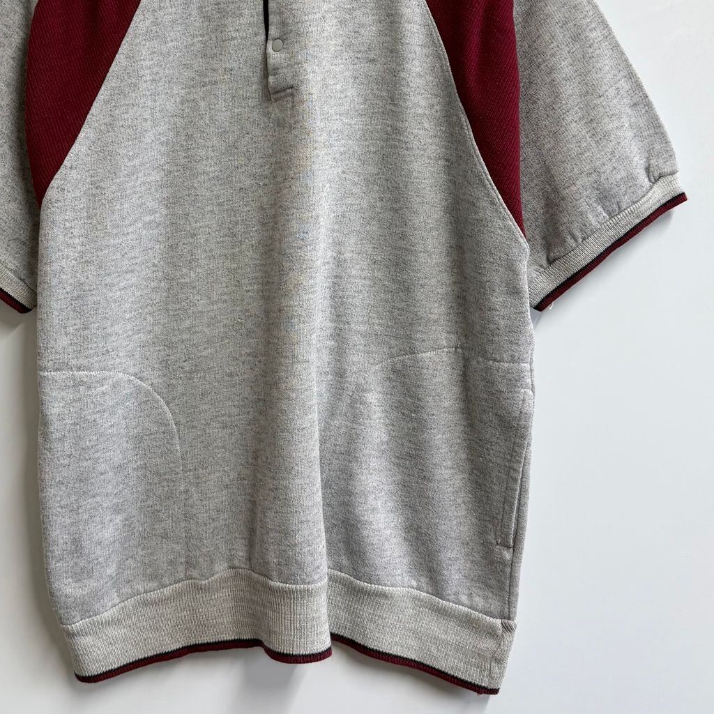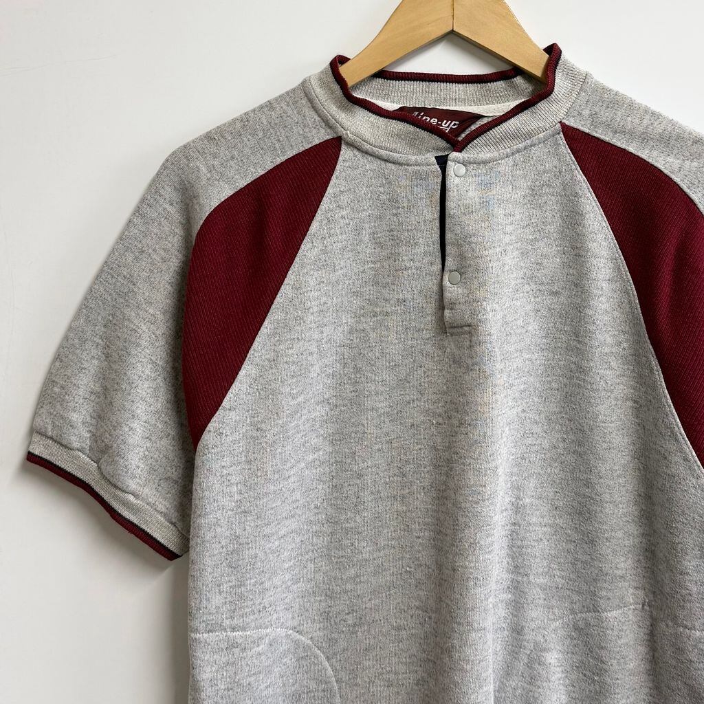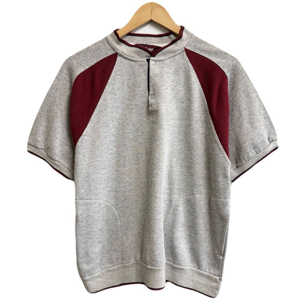 Line-up スウェットシャツ 半袖 ハーフボタン ポケット付き グレー×ワインレッド Lサイズ No.L394