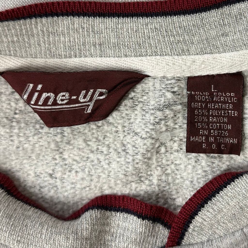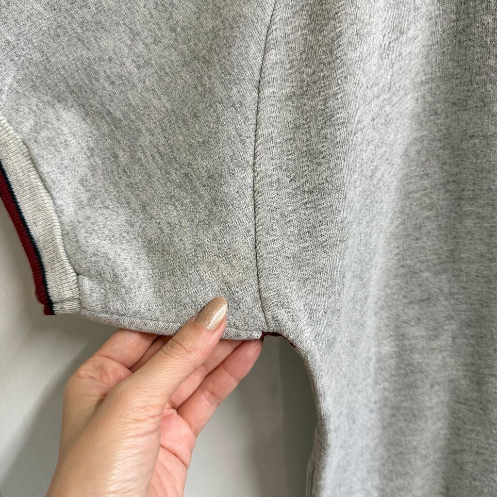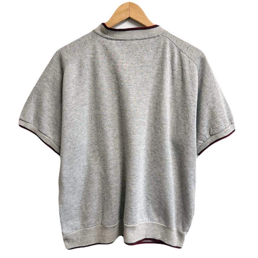 Line-up スウェットシャツ 半袖 ハーフボタン ポケット付き グレー×ワインレッド Lサイズ No.L394