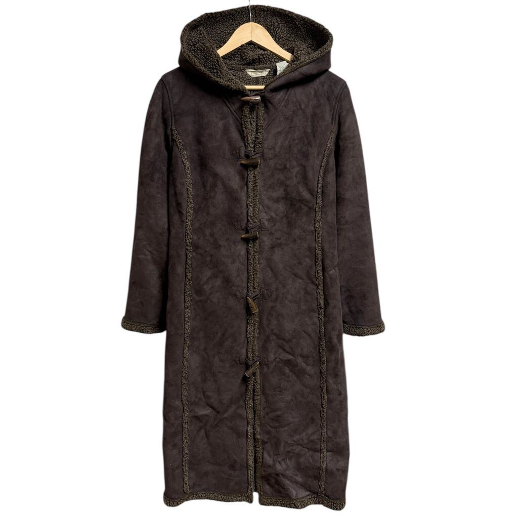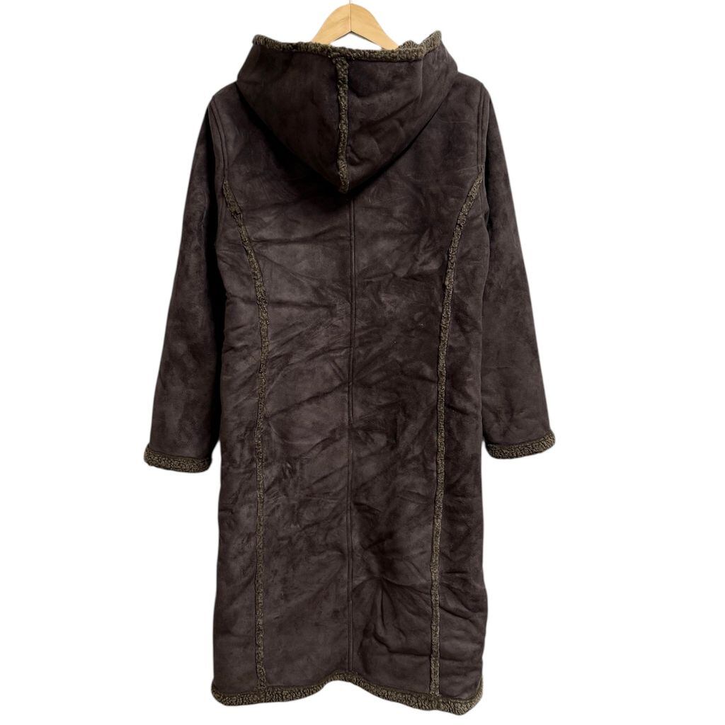 (レディース) L.L.Bean エルエルビーン フェイクスエード ダッフルコート シェルパ裏地付き ロングコート トグルボタン×フルジップ ポケット付き こげ茶 ダークブラウン Lサイズ No.L417