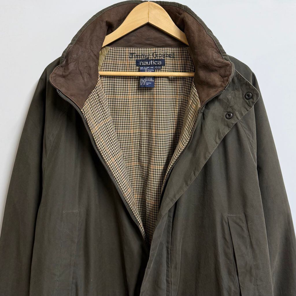 nautica ノーティカ ハーフコート フーデッドジャケット 裏地チェック柄 切り替えデザイン フルジップ ポケット付き カーキ XLサイズ No.L408
