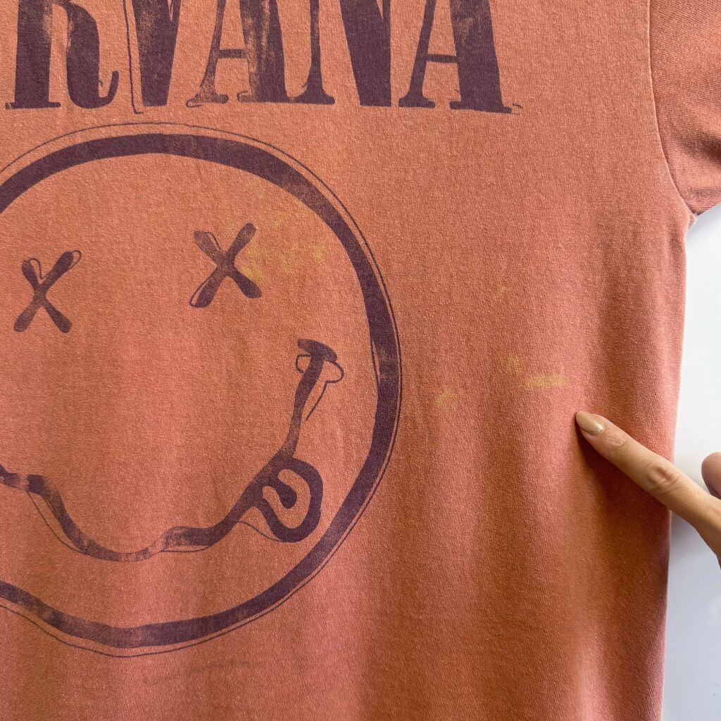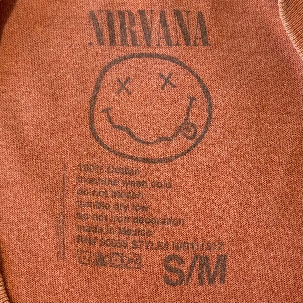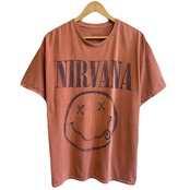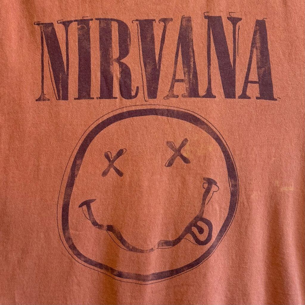 NIRVANA ニルヴァーナ スマイリーフェイス ロゴプリント バンドTシャツ 半袖Tシャツ テラコッタ オレンジ系 S/Mサイズ No.L419