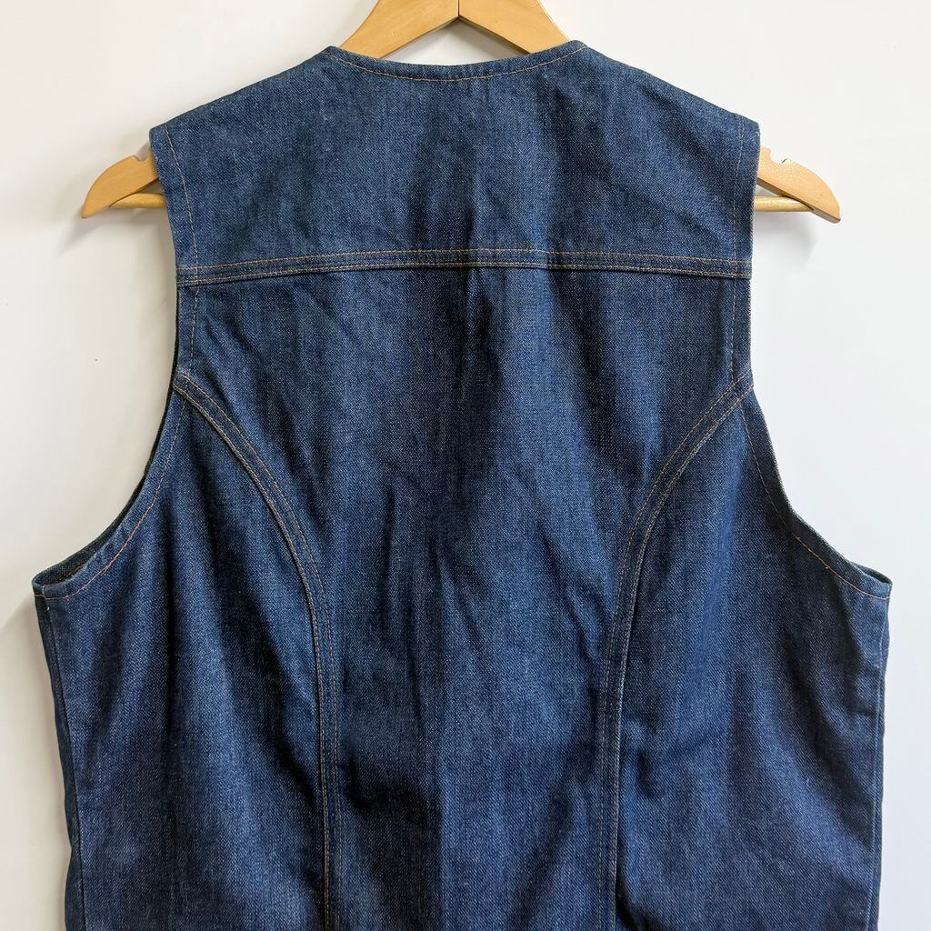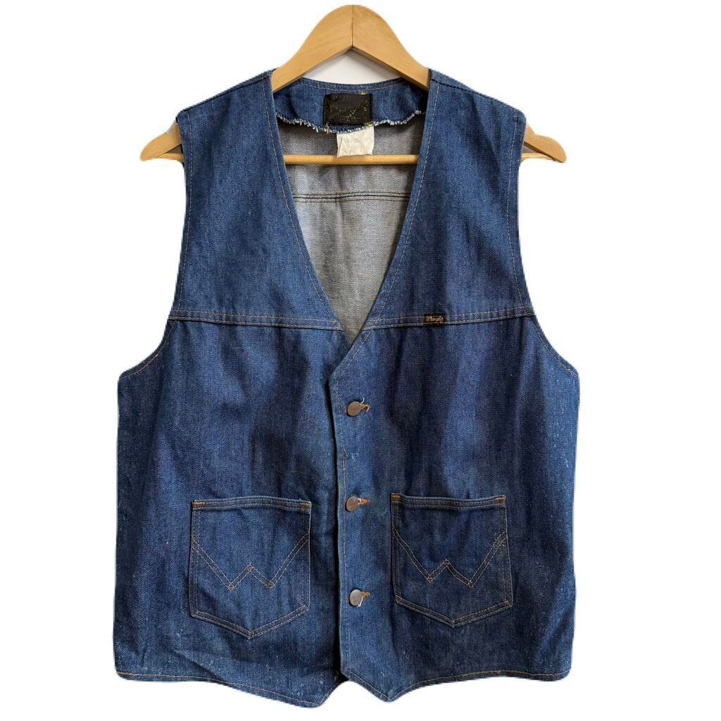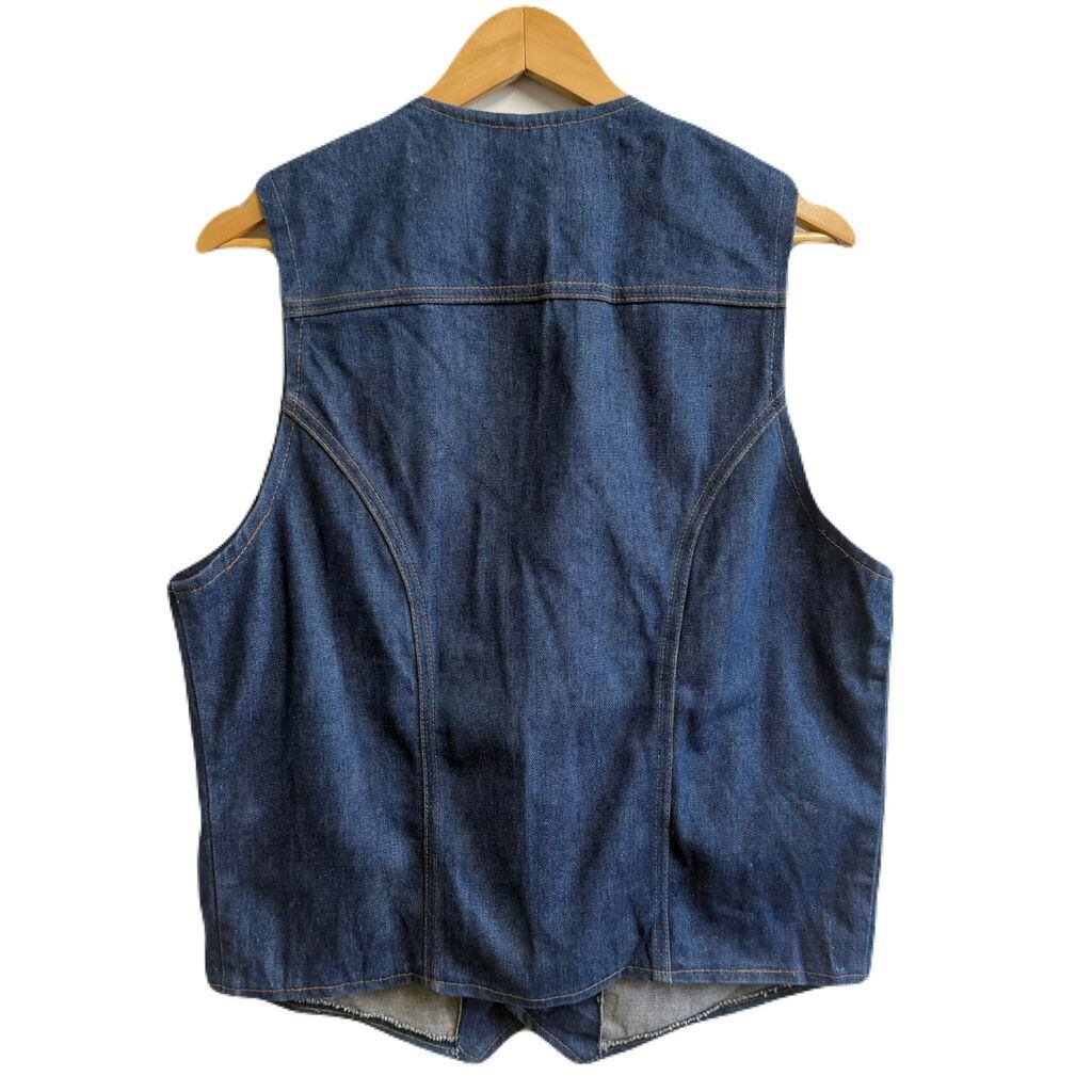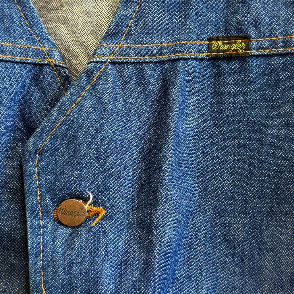 70's vintage ビンテージ Wrangler ラングラー デニムベスト コットンベスト Vネック フロントボタン 青 ブルー XLサイズ No.L471
