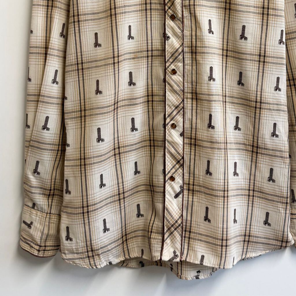 (レディース) Tem Tex ウエスタンシャツ スナップボタン 総柄 柄シャツ チェック柄×刺繍 長袖シャツ ベージュ×ブラウン No.L483