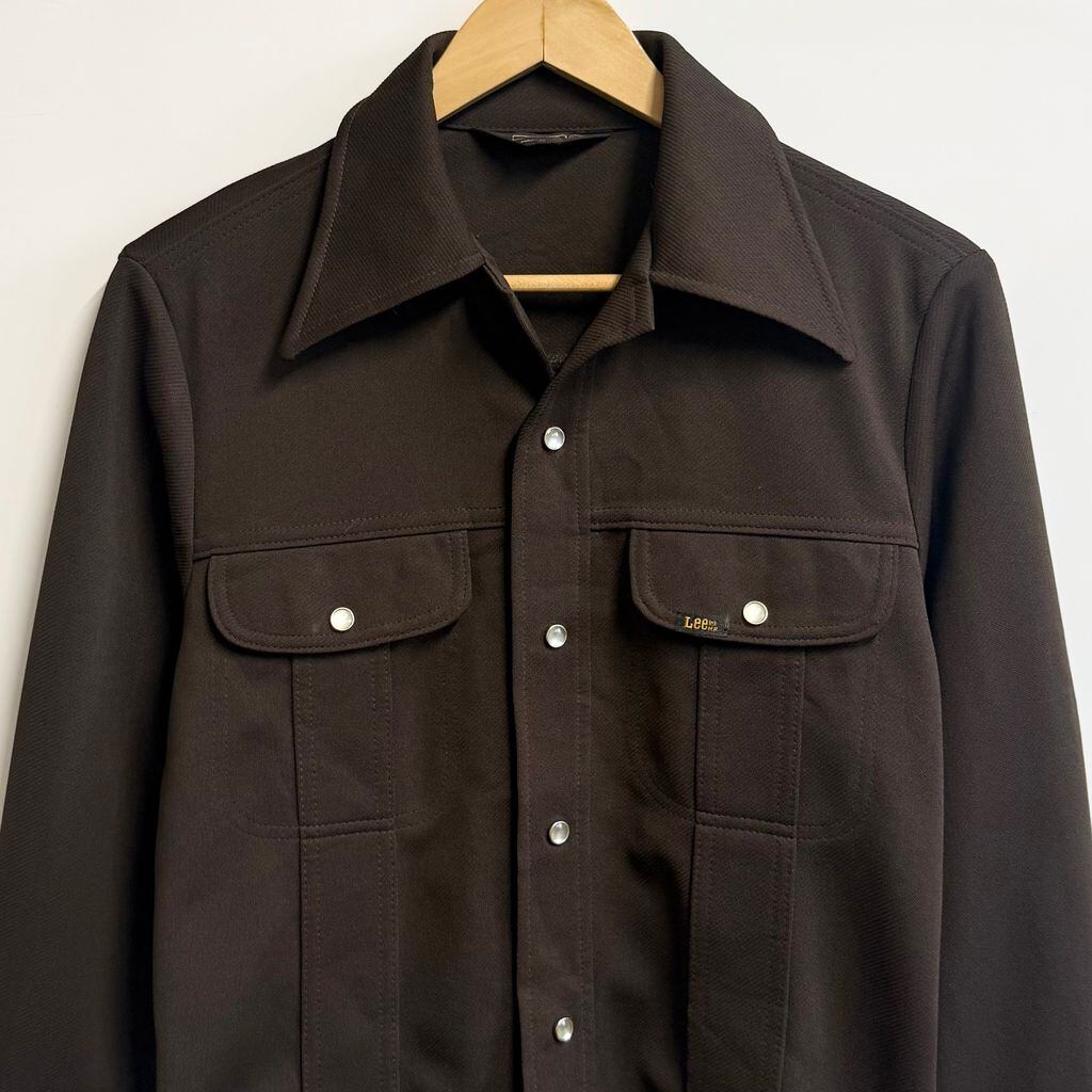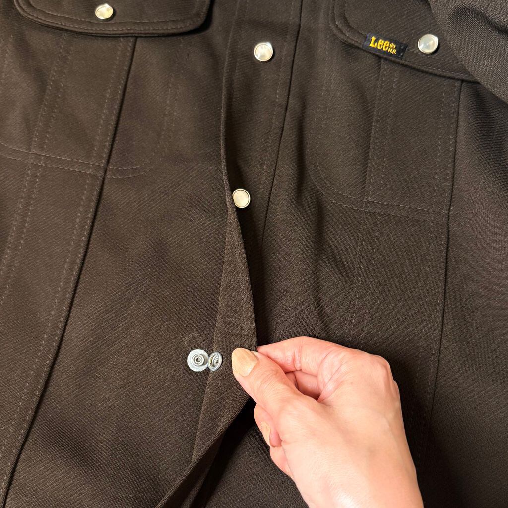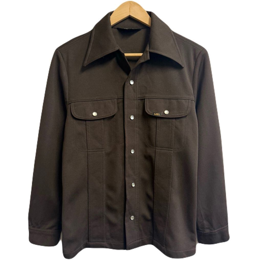 USA製 Lee リー シャツジャケット ウエスタンジャケット スナップボタン オープンカラー 開襟シャツ 厚手長袖シャツ こげ茶 ダークブラウン S-Rサイズ No.L485