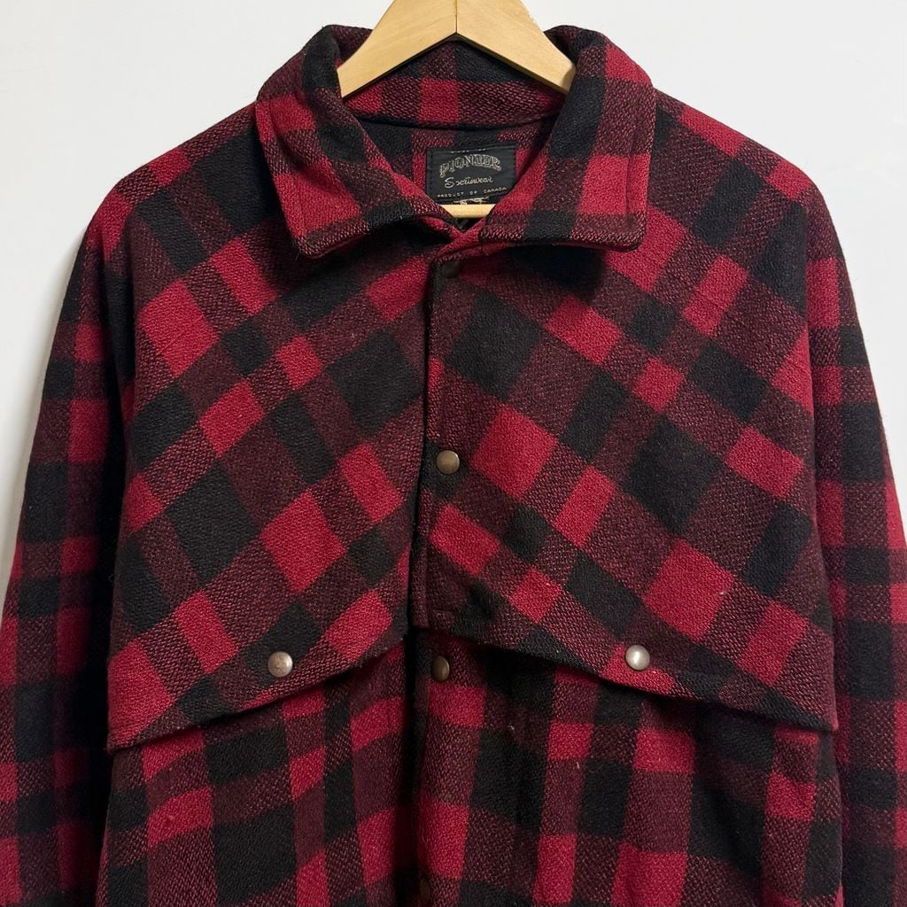60's vintage ビンテージ PIONEER ウールジャケット バッファローチェック マッキーノジャケット スナップボタン 赤×黒 No.L494