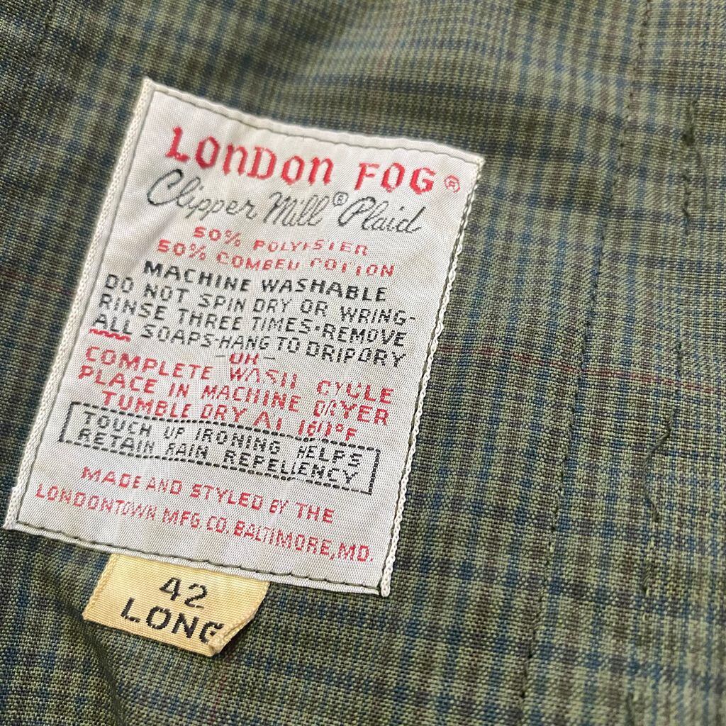 70s LONDON FOG ロンドンフォグ ステンカラーコート チェック柄 比翼 ロング 多色 サイズ42 No.S028