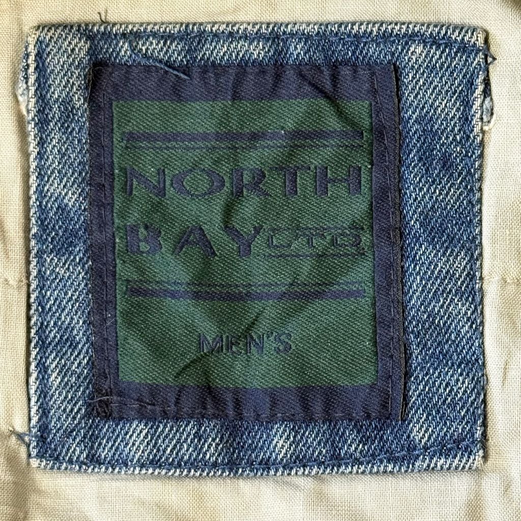 NORTH BAY 切り替えデザイン デニムスタジャン バーシティジャケット スナップボタン 青×ベージュ カーキ系 ビッグサイズ 3Xサイズ No.L510