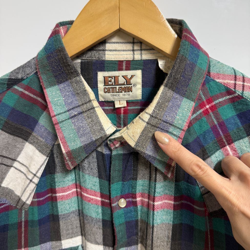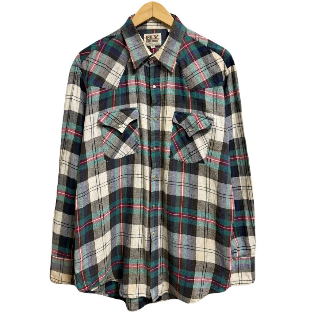 ELY CATTLEMAN ウエスタンシャツ スナップボタン コットンシャツ チェック柄 ポケット付き 長袖シャツ 多色 Lサイズ No.L516