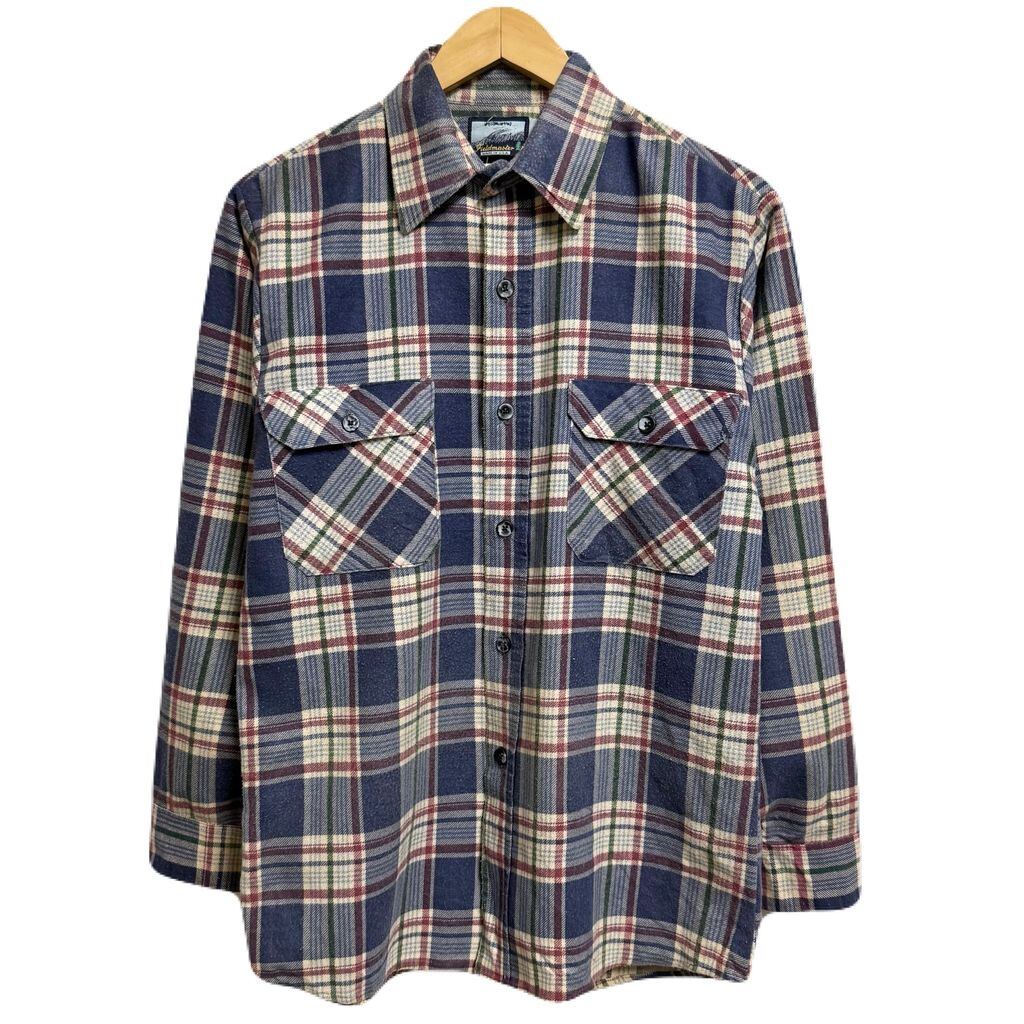 USA製 Fieldmaster チェック柄 ポケット付き 長袖シャツ 青系×白×多色 No.L518