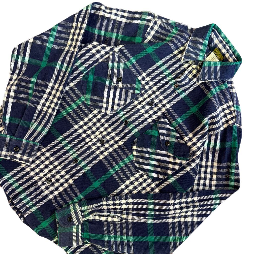 OshKosh B'Gosh オシュコシュ チェック柄 コットン ネルシャツ ヘビーネルシャツ 紺×白×緑 Sサイズ No.E972