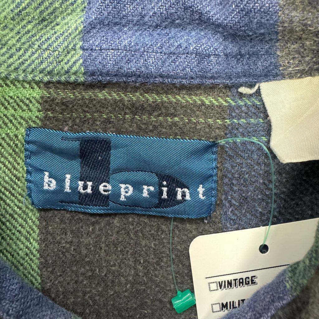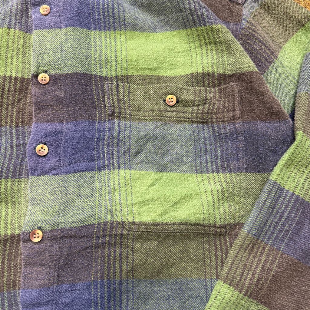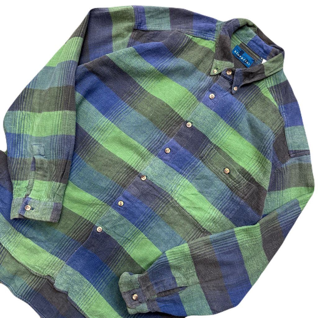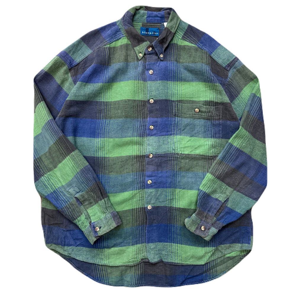 blueprint チェック柄 ボタンダウン ポケット付き ネルシャツ 青×緑 No.E976