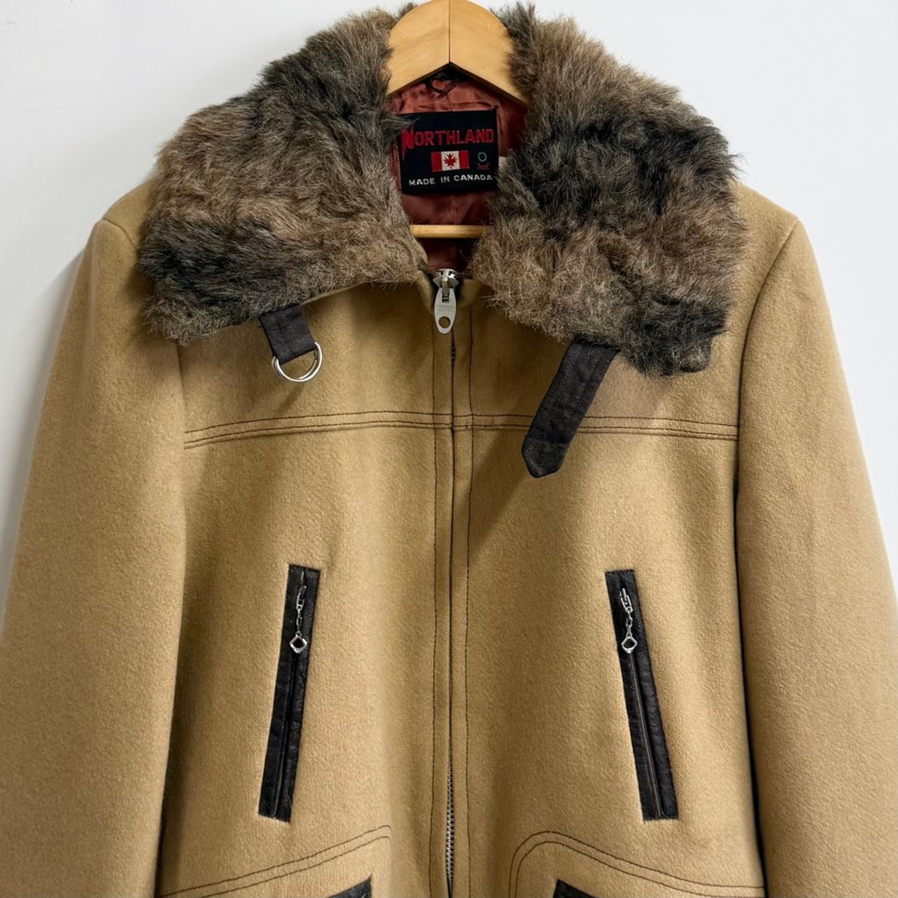 カナダ製 NORTHLAND カナディアンコート マッキーノコート ウールコート フルジップ ポケット付き ベージュ サイズ38 No.L527