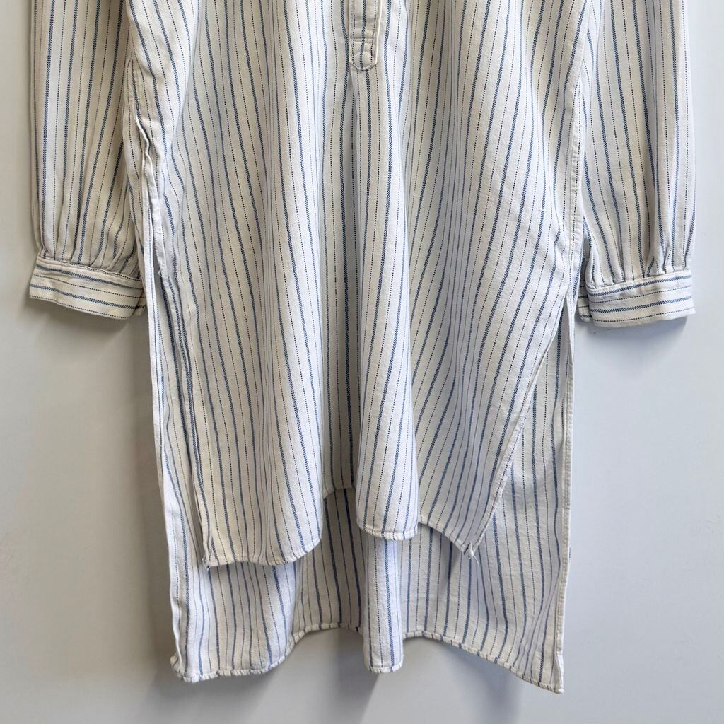 シャツワンピース ロングシャツ プルオーバー ハーフボタン ストライプ 長袖シャツ 白×青 No.L559