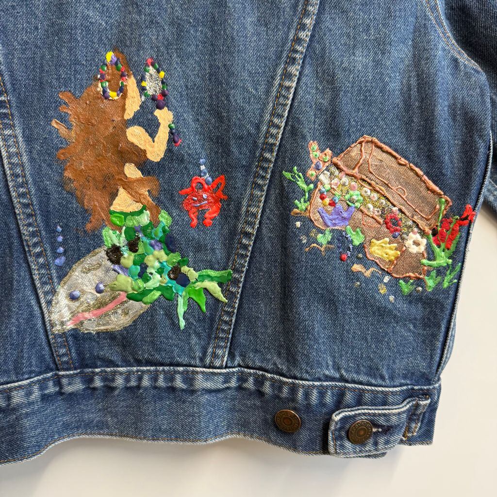 (レディース)(キッズ) Levi's リーバイス 76001-0214 カスタム リメイク ペイント 魚 人魚 宝箱 デニムジャケット Gジャン 青 ブルー Mサイズ No.L590