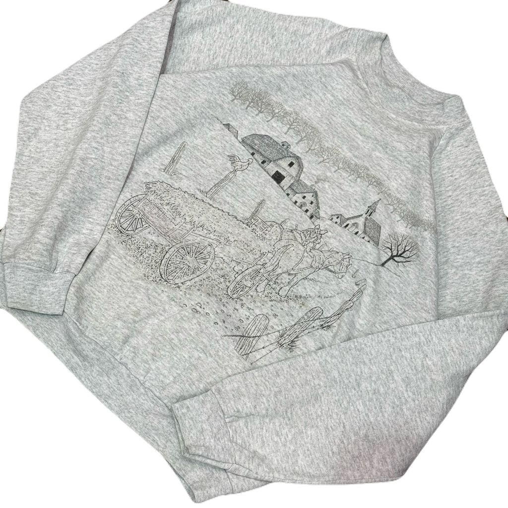 90s USA製 FRUIT OF THE LOOM フルーツオブザルーム 馬 プリント ラグランスウェット トレーナー ライトグレー Lサイズ No.E980