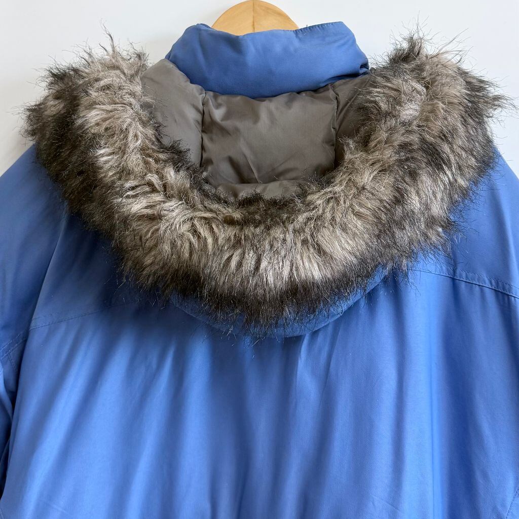 (レディース) ファー付きダウンジャケット ダウンパーカー フルジップ ポケット付き 青 ブルー XLサイズ No.L602