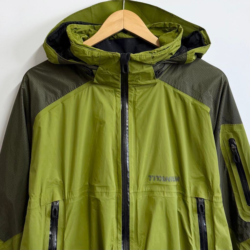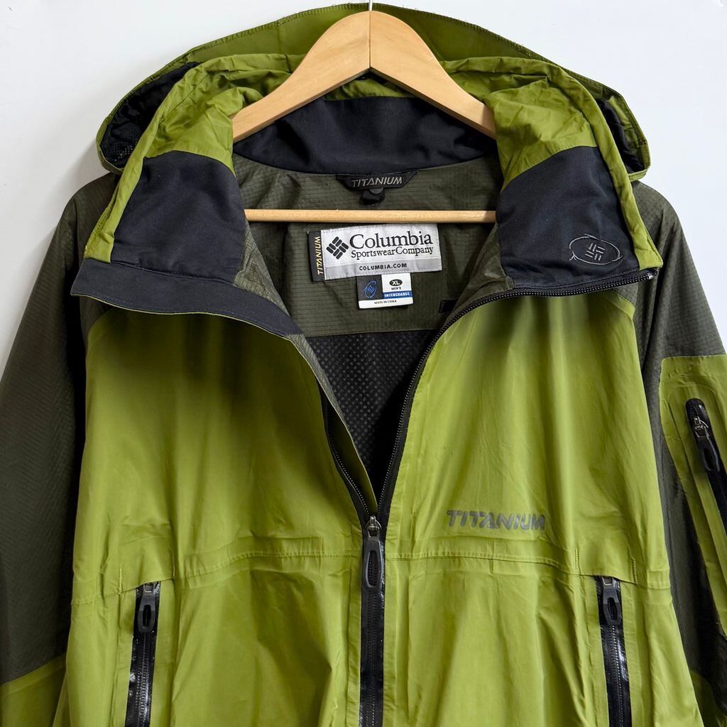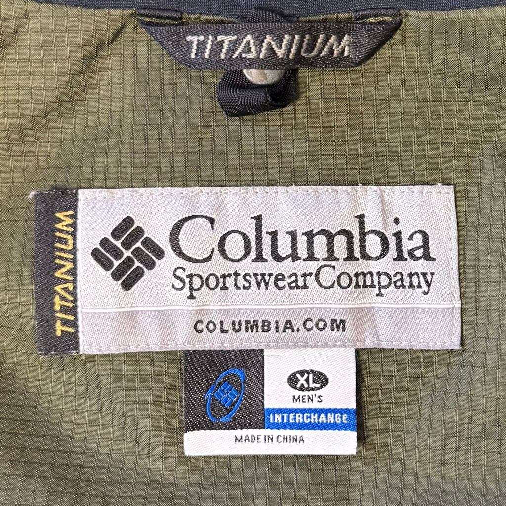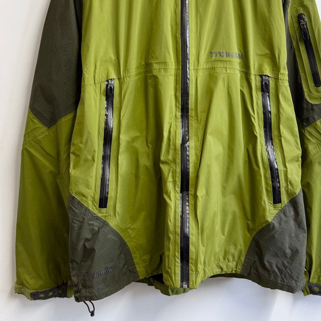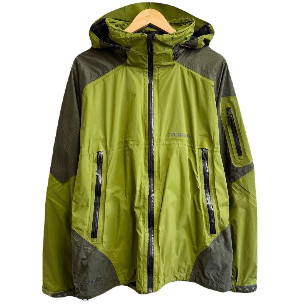 Columbia コロンビア TITANIUM チタニウム マウンテンパーカー アウトドアジャケット フード付き フルジップ ポケット付き グリーン×カーキ XLサイズ No.L604